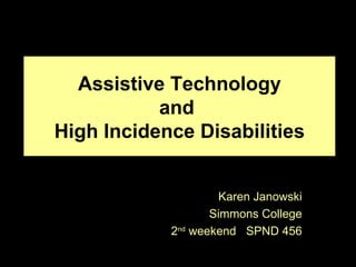 This document discusses assistive technology and high incidence disabilities, particularly as they relate to math. It notes that 5-8% of students have math disabilities which can stem from issues with mechanics, computation, concepts, facts, orientation, or number confusion. Technology to help remediate math disabilities is less developed than for reading/writing. Students may also have comorbid reading disabilities or ADHD. The document outlines low-tech and digital tools to help with math calculations, word problems, memory, organization, notetaking and studying. It stresses the importance of teaching strategies like planning, association and repetition to support learning.