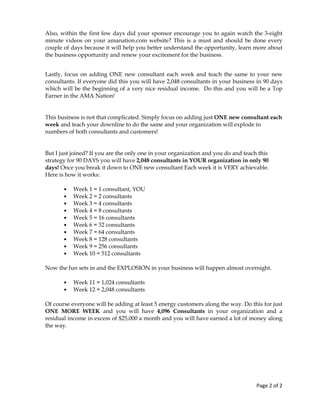 Sponsoring new consultants comes with responsibilities to help them succeed. A sponsor should introduce new consultants to the business tools and opportunities, explain strategies for growth, and encourage them to add one new consultant per week. Doing this will help new consultants build their business and result in exponential growth, with the potential to have over 2,000 consultants in the organization within 90 days generating significant residual income. Sponsors must mentor new consultants and ensure they activate rewards programs to receive commissions.