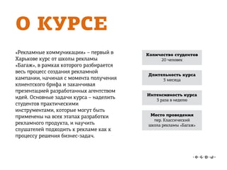 Курс «Рекламные коммуникации» от школы рекламы «Багаж» в Харькове предлагает студентам изучить процесс создания рекламной кампании от брифа до презентации идей. Продолжительность курса составляет 3 месяца, с акцентом на практическое применение инструментов для решения бизнес-задач. Участники имеют возможность стать проектными спонсорами и получить концепции рекламных кампаний, аналитические исследования и упоминания о своем бренде в материалах курса.