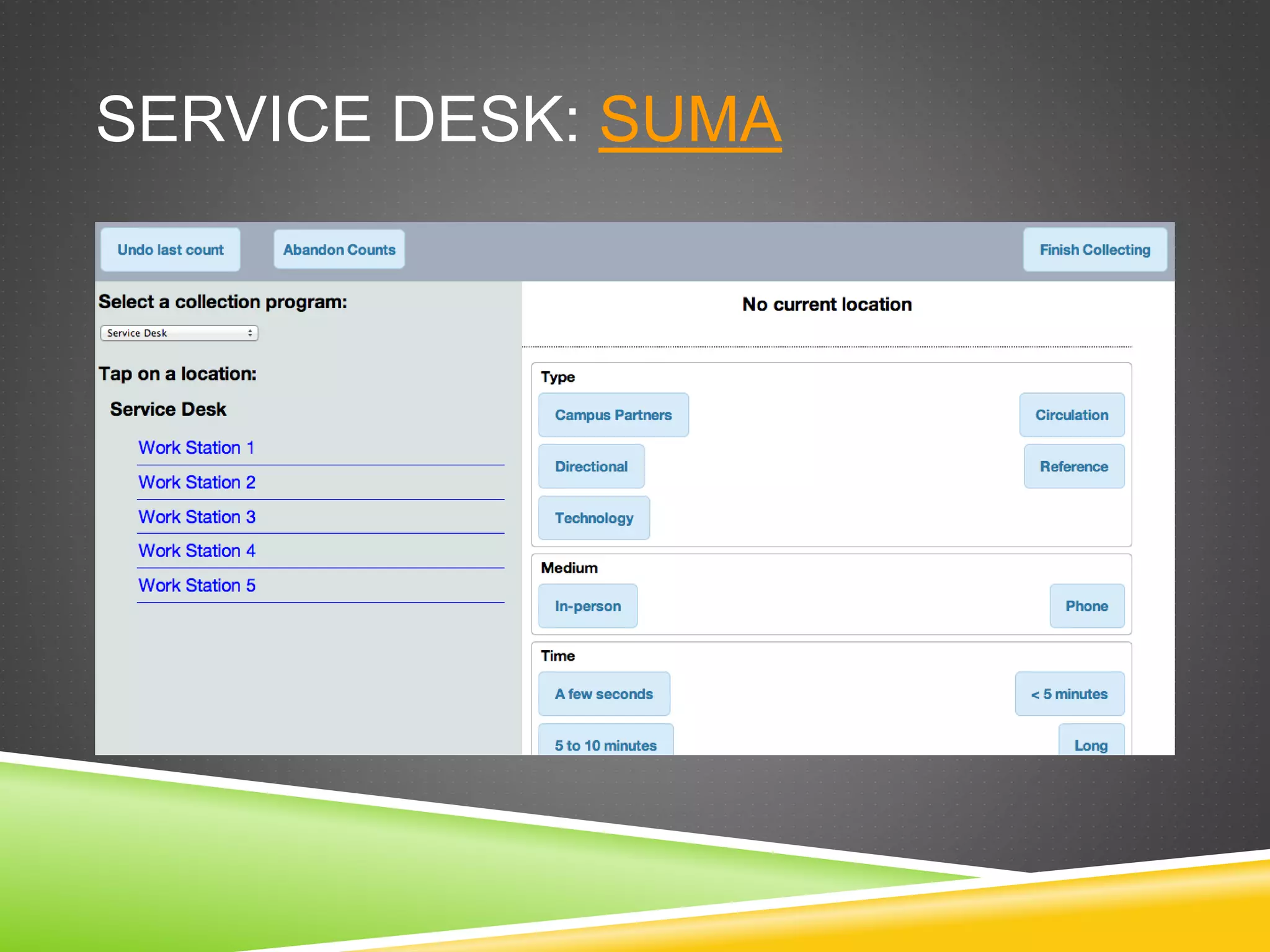 The document summarizes statistics about usage of the Main Library and Library Collections from October 2013 to March 2014. It shows the number of people entering each location each month, as well as statistics on what patrons were doing (tech help, studying, using smartphones), when they were visiting, and peak usage times. Other sections provide information on programming, tutoring, classes, tours, campus partnerships, and services at the service desk like transactions and training. Group study room usage and most popular rooms are also detailed.