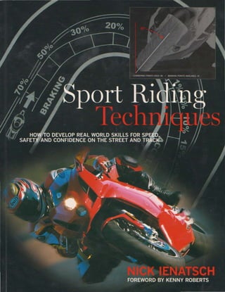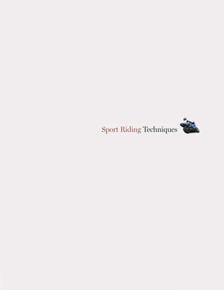 This document provides an introduction to a book about sport riding techniques for motorcycles. It discusses how motorcycle technology has advanced greatly, outpacing riders' skills. The book aims to strengthen riders' abilities by teaching techniques to ride safely yet quickly. It will cover topics like braking, vision, steering, acceleration, the environment, track riding, urban survival, and group riding. The goal is to help all riders, from beginners to experts, refine their skills and appreciate that proper techniques are important for performance and safety.