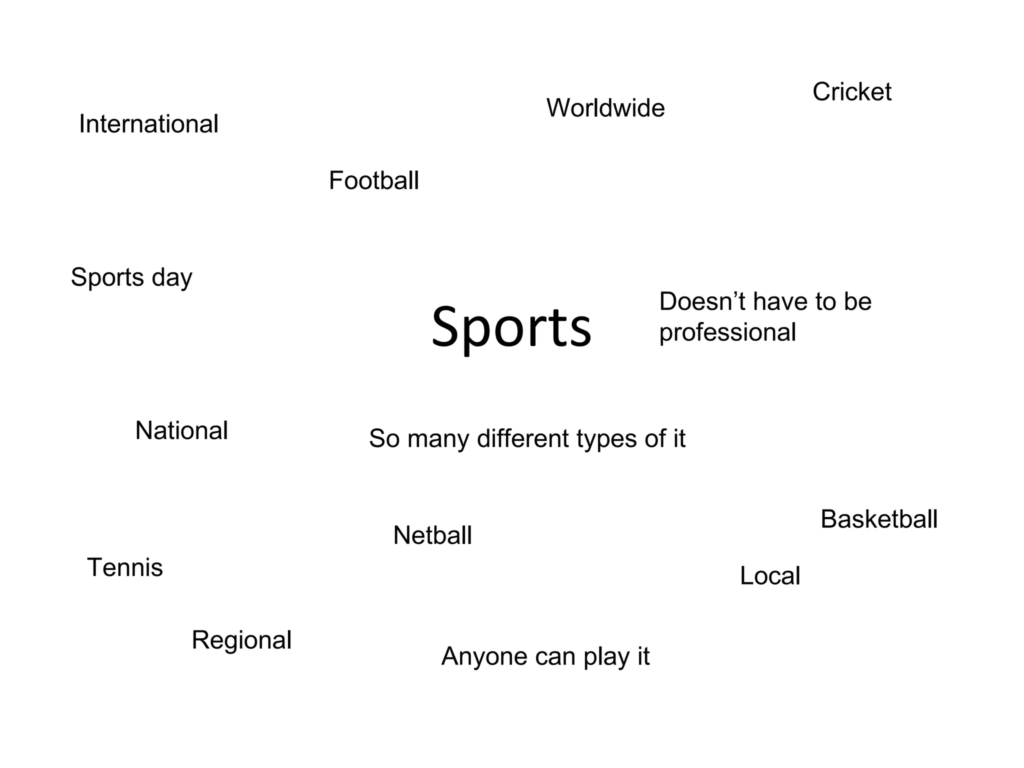The document discusses several popular sports including football, cricket, tennis, netball, basketball, and hockey. It reflects on memories of watching and playing some of these sports, different athletes and events associated with them, and perceptions of the sports having gender or cultural associations. Prominent sponsors of sports are also mentioned in the random collection of thoughts.