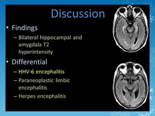 - Case 2 describes a immunocompromised patient with altered mental status, showing findings of toxoplasmosis. Case 6 shows imaging and diagnosis of Moyamoya disease in a