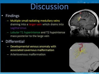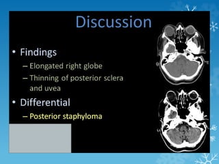 This document contains descriptions of various medical imaging findings and cases. Some key points summarized: