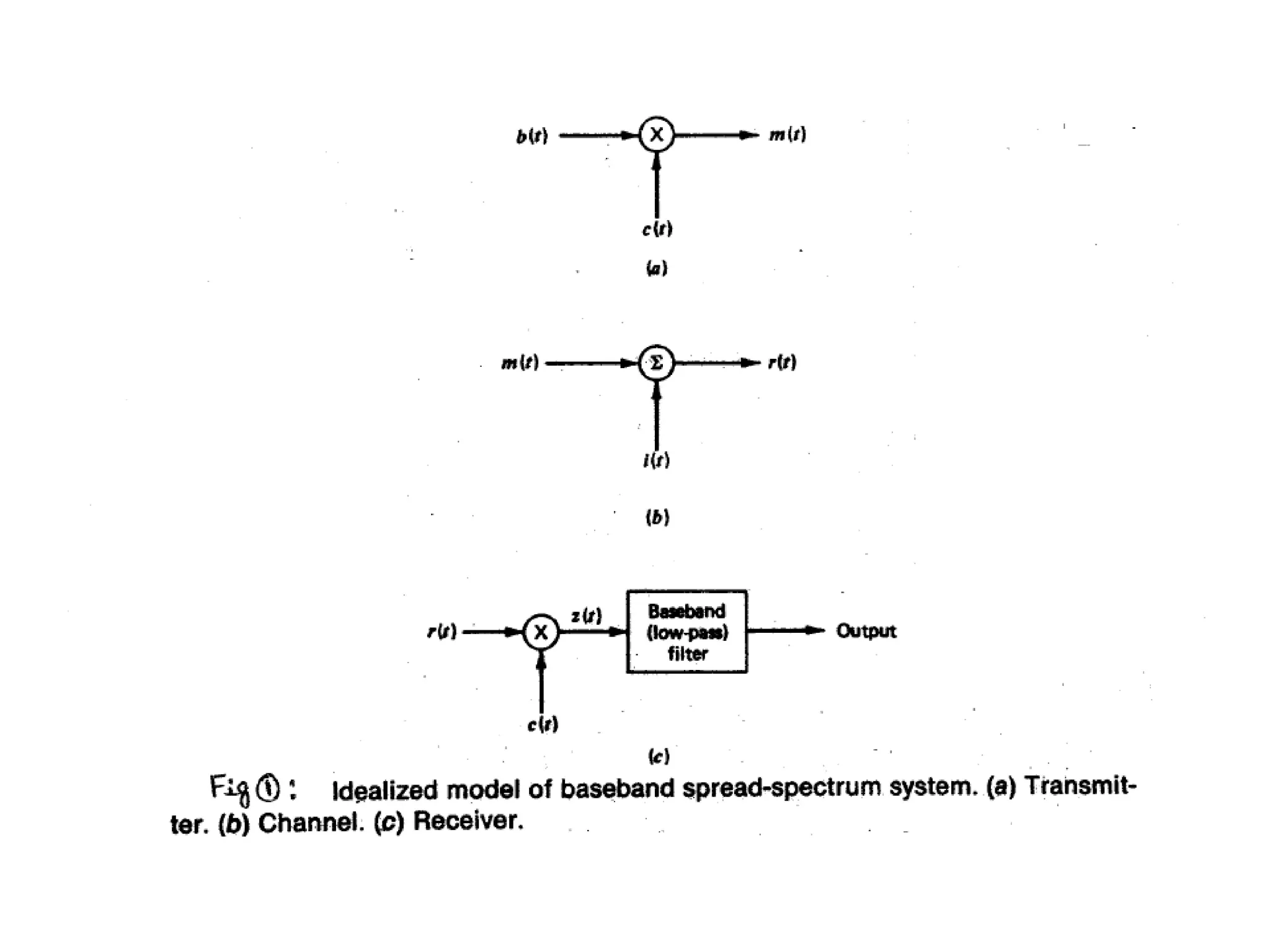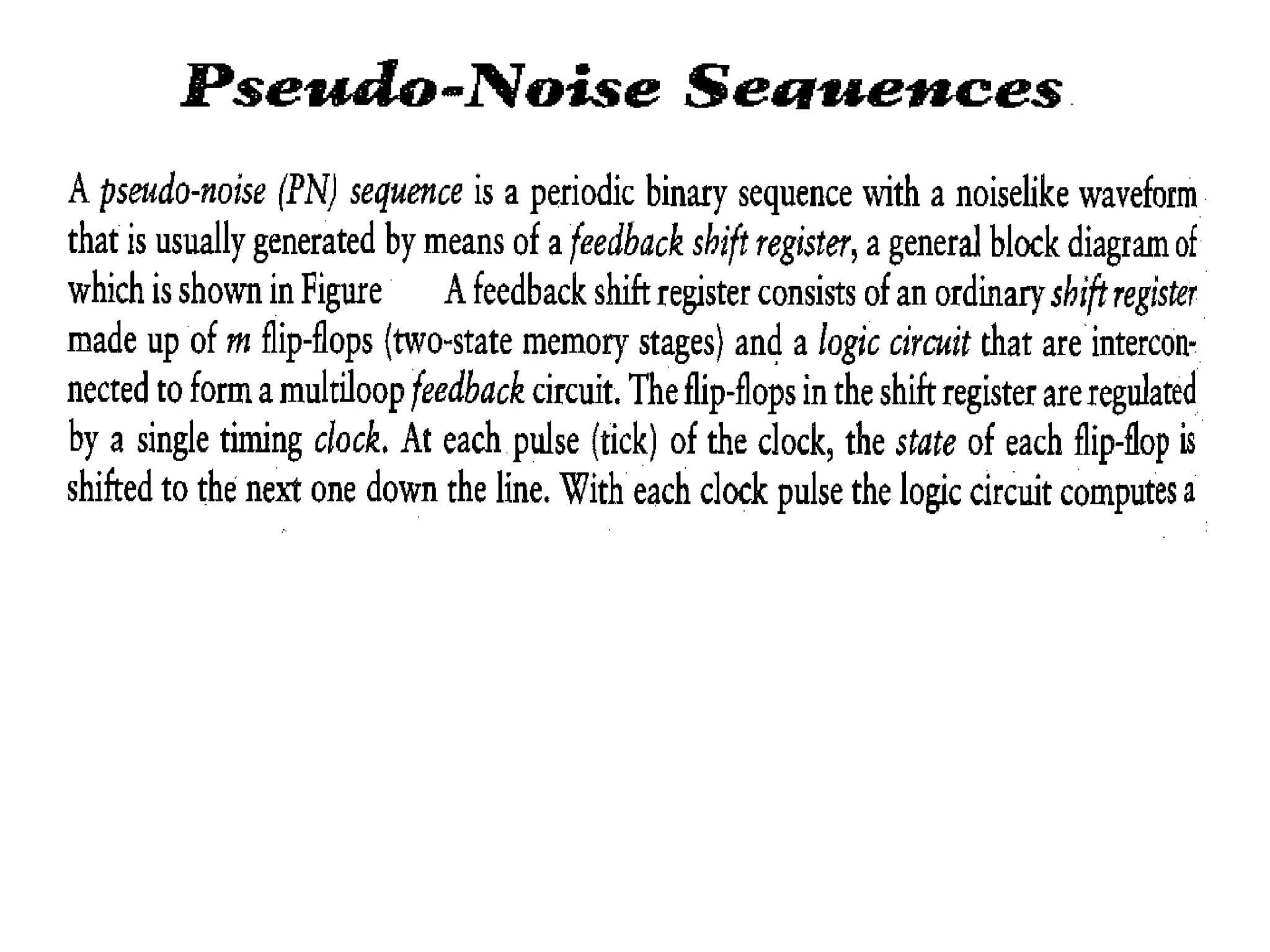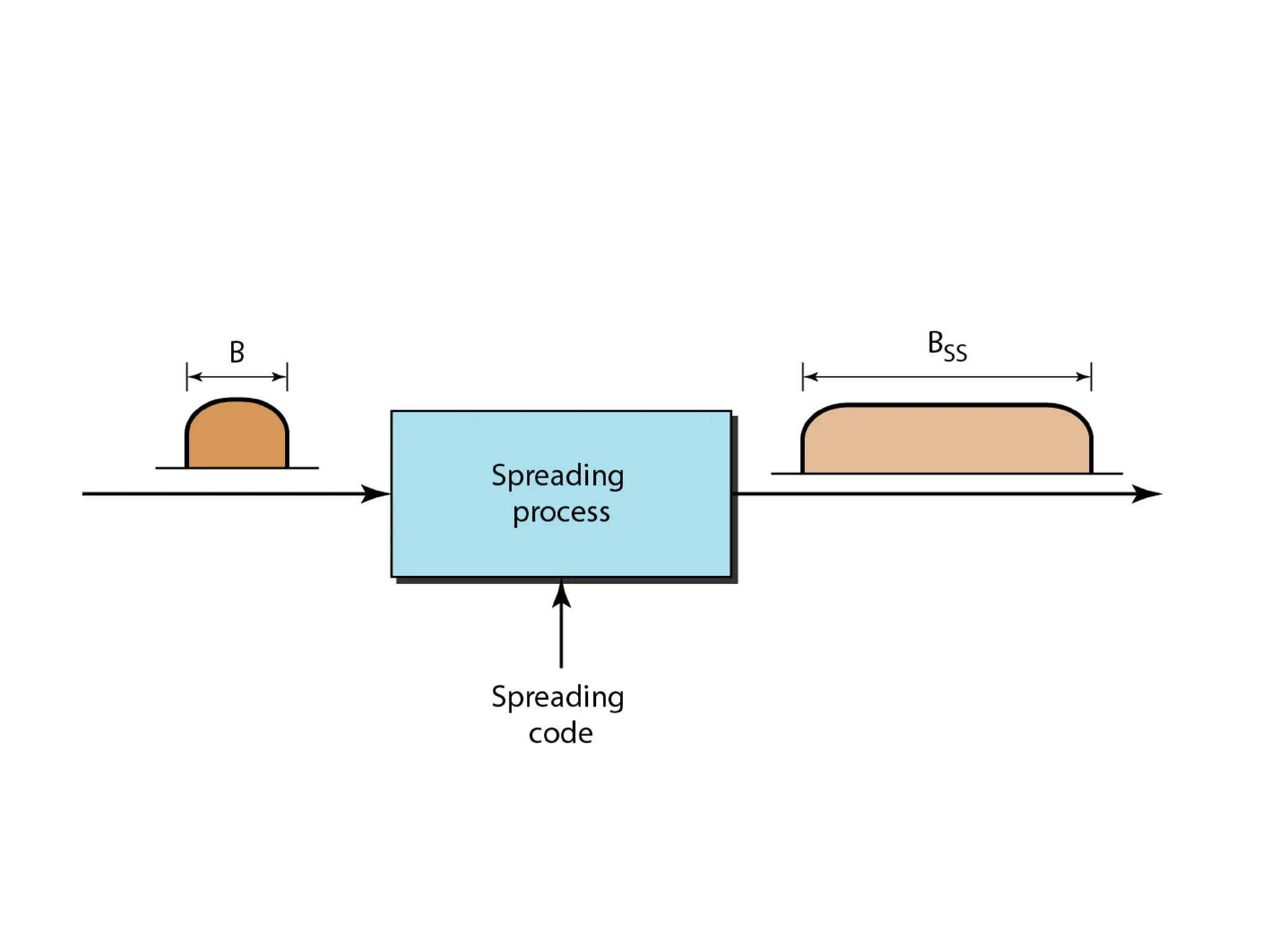 #6 highlights the key characteristics of any spread spectrum system. Input is fed into a channel encoder that produces an analog signal with a relatively narrow bandwidth around some center frequency. This signal is further modulated using a sequence of digits known as a spreading code or spreading sequence. Typically, but not always, the spreading code is generated by a pseudonoise, or pseudorandom number, generator. The effect of this modulation is to increase significantly the bandwidth (spread the spectrum) of the signal to be transmitted. On the receiving end, the same digit sequence is used to demodulate the spread spectrum signal. Finally, the signal is fed into a channel decoder to recover the data.