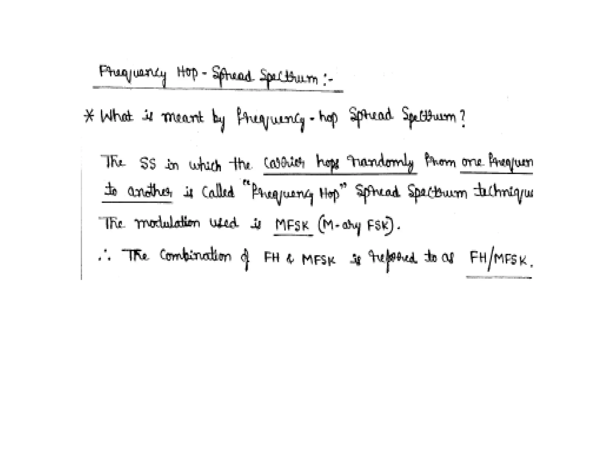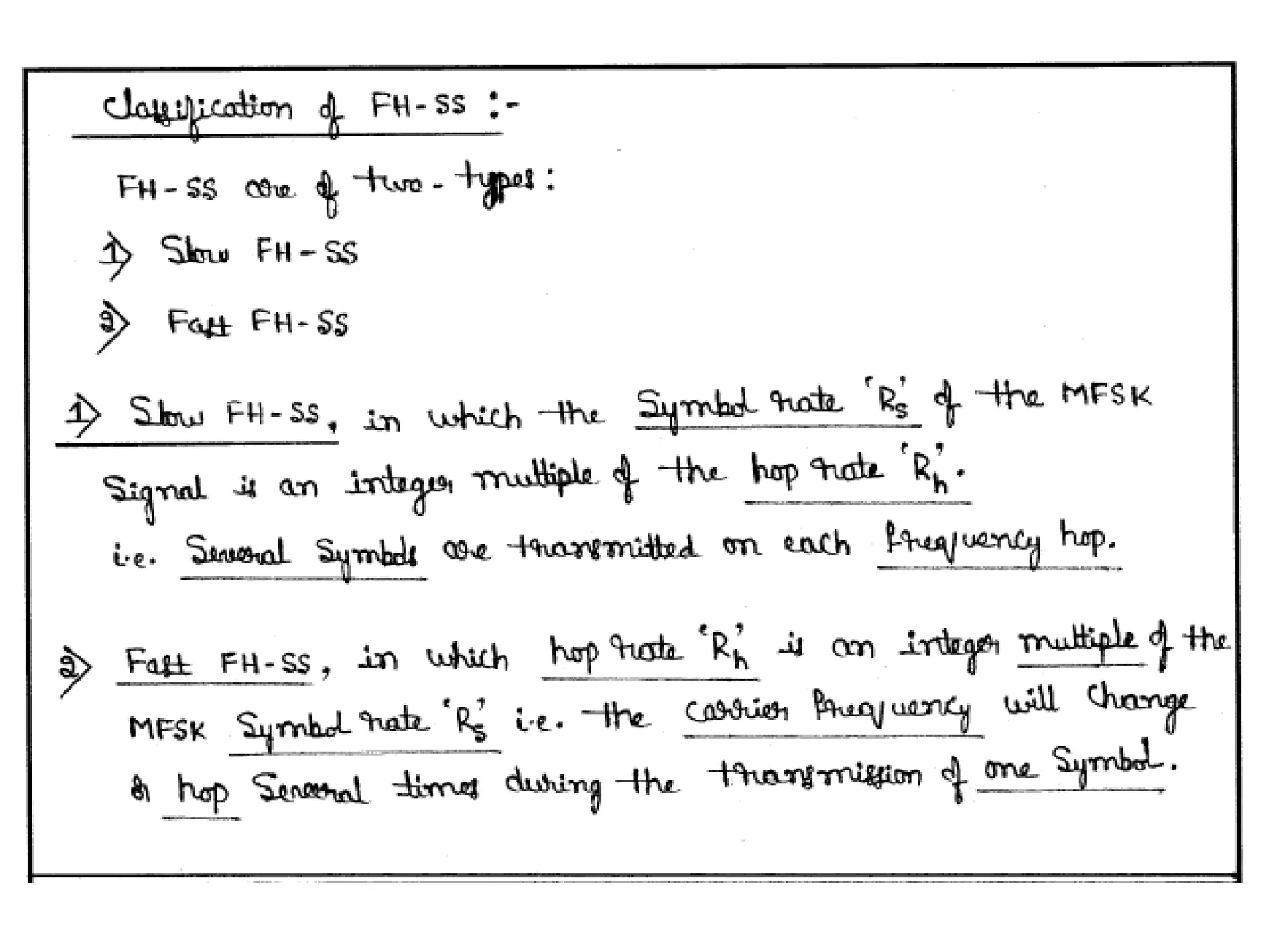 • The frequency hopping spread spectrum (FH-SS) system is an