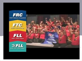 This document provides an overview of FIRST (For Inspiration and Recognition of Science and Technology), a national organization that aims to inspire youth in STEM fields through mentor-based robotics programs. It describes the four levels of robotics competitions for different age groups, from Junior FIRST Lego League for ages 6-9 up to the FIRST Robotics Competition for ages 14-18. The FIRST Tech Challenge is introduced for ages 14-18 as involving building an 18x18x18 inch robot using an NXT brick and other materials to complete tasks over 5 days of a summer camp, learning skills like programming, problem-solving, and teamwork.