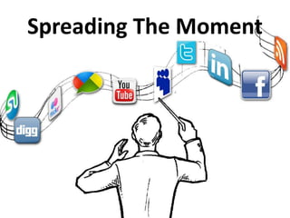 This document provides guidance on spreading a message or idea across online communities. It recommends starting and finishing conversations at a dedicated landing page, and using forums, mailing lists, online communities, and endorsements to share and spread information between groups.