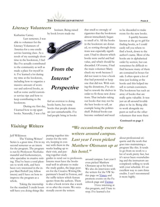L. Annette Binder gave a craft talk at SUNY Fredonia where she emphasized focusing on character development over plot structure in writing by discussing her short story collection Rise. During her talk, Binder read from one of the stories and demonstrated her approach of deeply connecting with characters by inhabiting their perspectives. The audience came away with insight into Binder's process of bringing surreal characters to life through intimate authorial engagement.