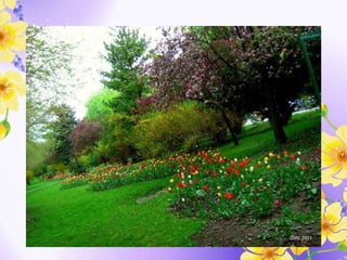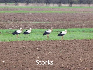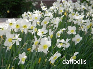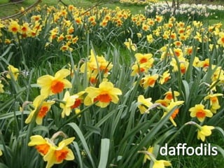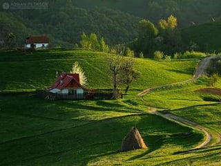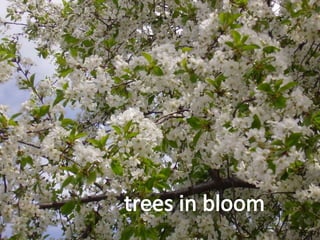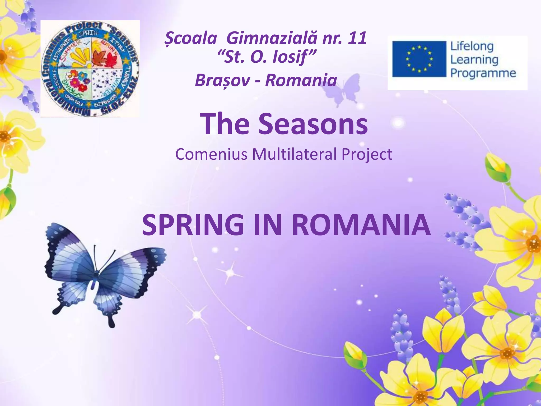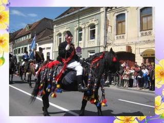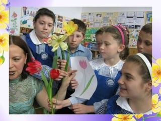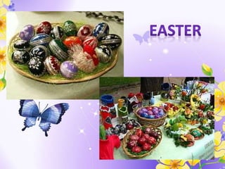 Spring in Romania is marked by changing weather and the growth of new plant life. The months of March and April can see snow but also signify renewal. Birds return and animals give birth. People prepare the land for planting. Traditional celebrations include Mărțișor on March 1st, International Women's Day on March 8th, and Palm Sunday before Easter. Easter is the most important Christian holiday and is celebrated with church services, decorated eggs, knocking eggs in games of life and death, and special foods like lamb and Pască cake.