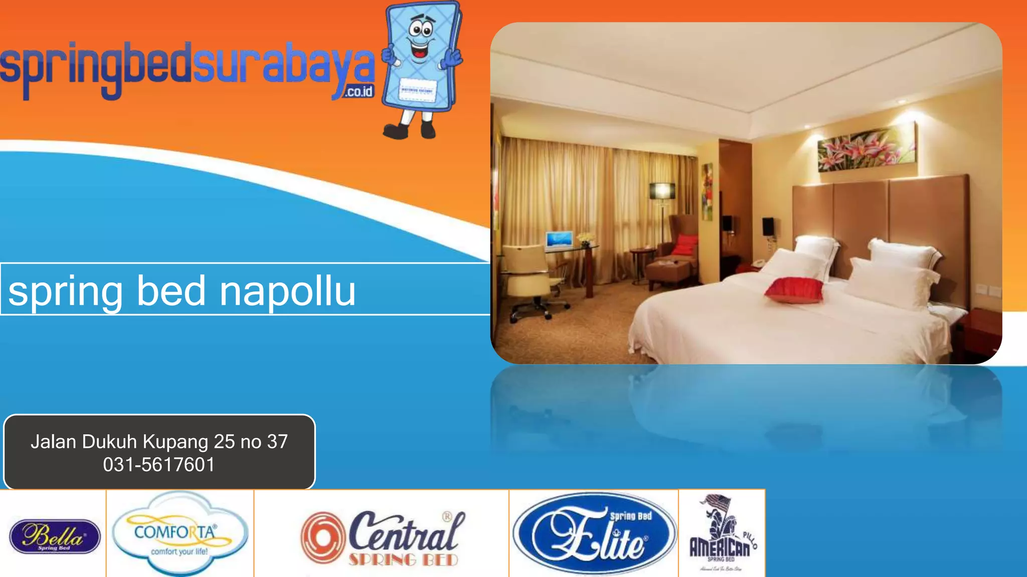 Dokumen ini menampilkan informasi tentang berbagai jenis dan harga spring bed berkualitas yang tersedia di lokasi Jalan Dukuh Kupang 25 No 37. Pengunjung dapat mengecek katalog harga terbaru dan terlengkap di www.springbedsurabaya.com. Terdapat berbagai pilihan termasuk spring bed anak, kasur dari merk terkenal, dan penawaran khusus lainnya.