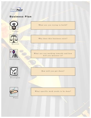 The document provides templates and examples for creating business plans, including sections on vision, mission, objectives, strategies and plans. It includes a sample business plan for a company called "Women Helping Women in Business, Inc." that aims to support women entrepreneurs. Additional templates provide guidance on creating a one-page business plan, tracking sales conversion rates, and setting sales and marketing targets.