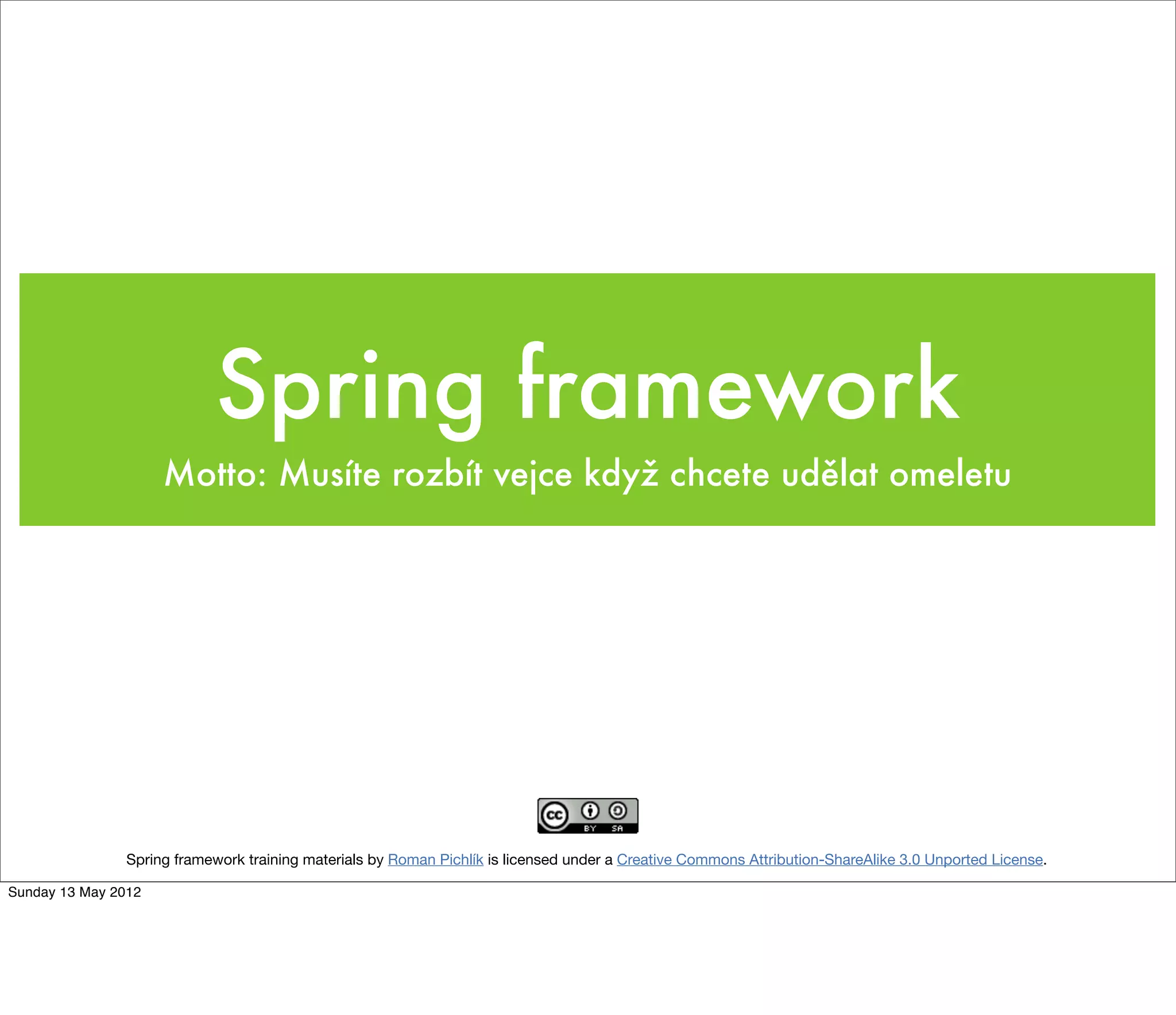 Spring framework training materials by Roman Pichlík is licensed under a Creative Commons Attribution-ShareAlike 3.0 Unported License.
