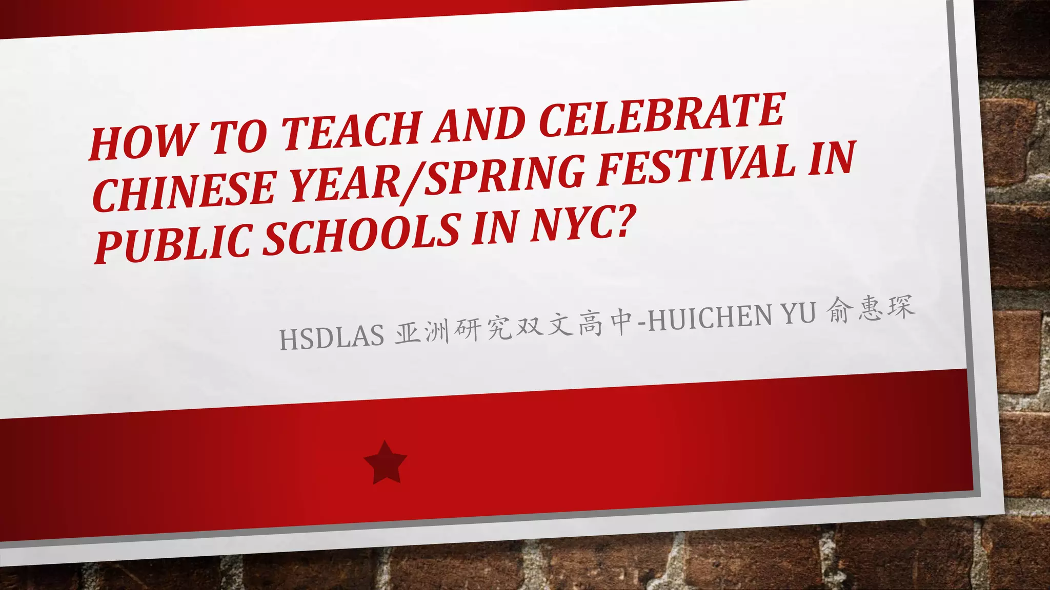 The document outlines plans for introducing Chinese Spring Festival in foreign language classes at a New York high school. It discusses delivering the core values of the festival through daily teaching practices and introducing traditions like reunion, embracing the new year, and inheriting filial duty. It provides resources for teaching like videos, slides, worksheets and textbooks. It proposes designing lessons chronologically from the lunar calendar to animal zodiacs to pre-festival practices. It suggests experiences like classroom decorations, lucky phrases and a school-wide celebration to help students understand and embrace the authentic cultural values.