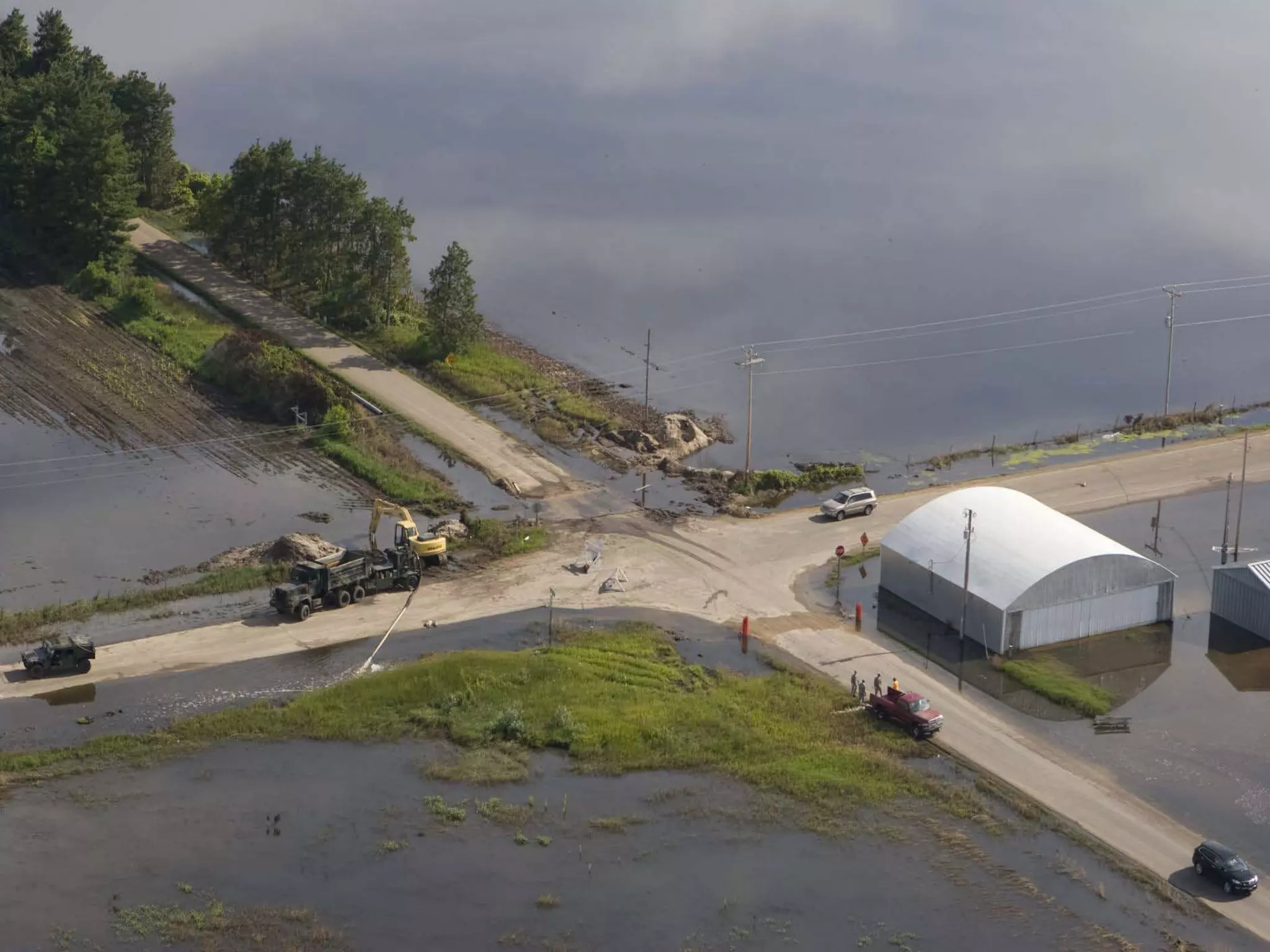 2) Modeling showed that constructing drainage basins and outlets could reduce the depth, area, and duration of future flooding, but would require overcoming numerous permitting challenges and coordinating with various stakeholders.