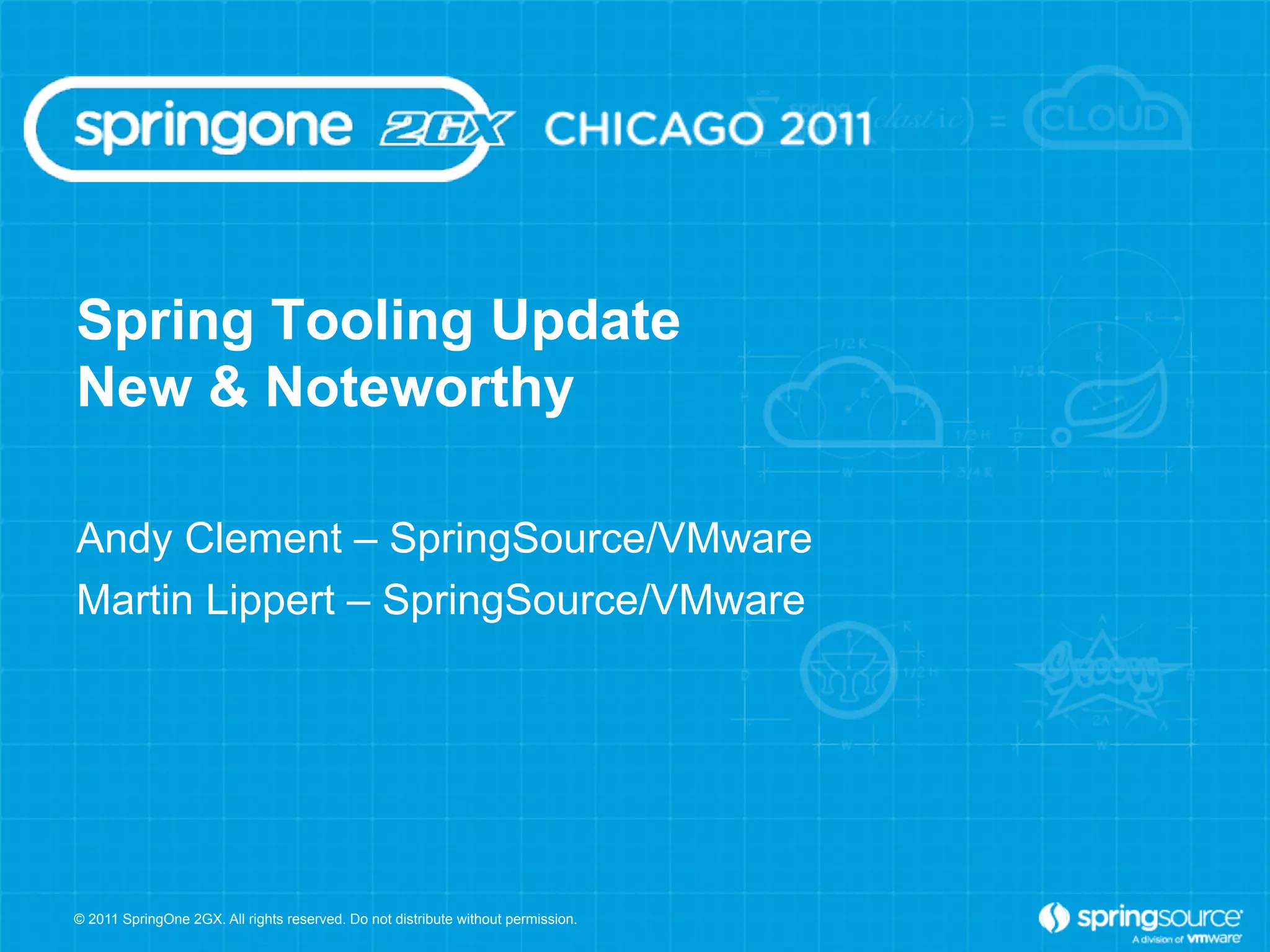 This document provides an overview and summary of new features in the Spring Tool Suite (STS) development environment. STS 2.8.0 introduces support for Java 7 language features, Spring 3.1 profiles and c-namespace, Groovy 1.8.3 and Grails 2.0, and Gradle integration. It also improves support for developing Spring applications on Cloud Foundry, including direct deployment, debugging apps in the cloud, and profiling apps with Spring Insight. Future releases will provide more advanced Spring and Grails support, as well as making STS open source.