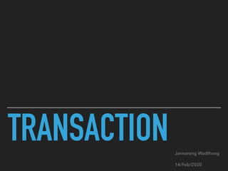 The document discusses transactions in JavaScript and Spring. It covers establishing database connections, performing queries within transaction boundaries, and different transaction propagation types like REQUIRES_NEW. Programmatic and declarative transaction models are compared. Common pitfalls with @Transactional like unexpected multiple transactions are explained.