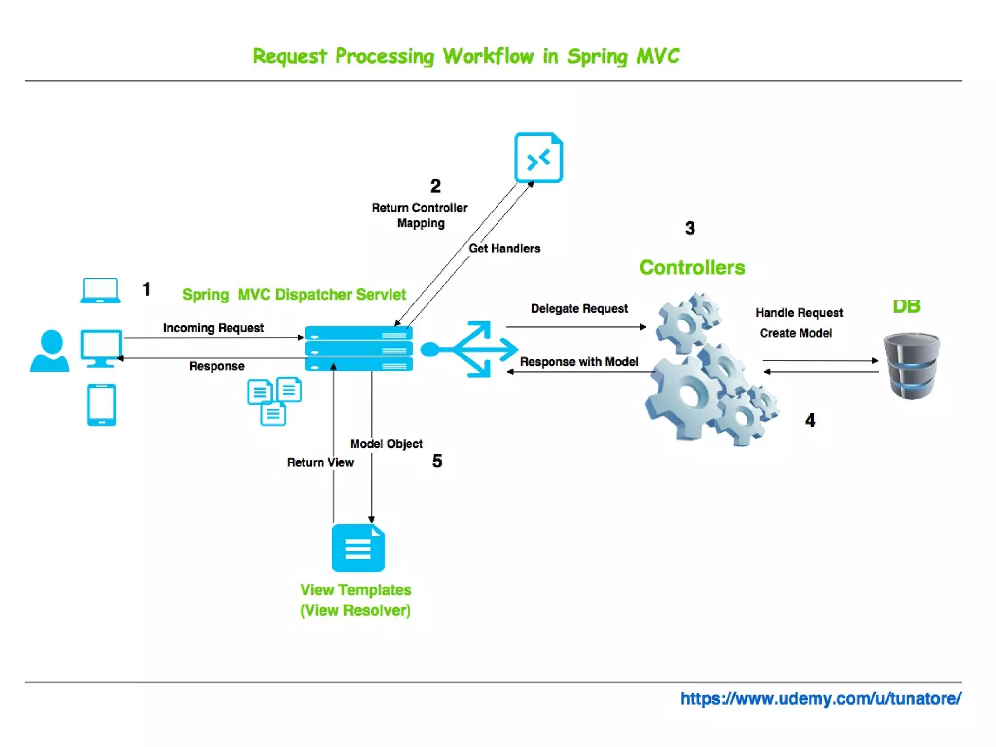 The document provides an introduction to the Spring MVC framework. It describes key concepts such as MVC architecture, dependency injection, configuration of the DispatcherServlet, mapping requests to controllers, and defining views. It also discusses configuring other features like file uploads, scheduling, logging, security, and exceptions handling. The document encourages enrolling in a Udemy course for more details on using Spring MVC.