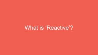 The document discusses the concepts of reactive programming and systems, outlining their principles including responsiveness, resilience, elasticity, and asynchronous message-driven architecture. It covers various libraries and frameworks such as Akka, RxJava, and Ratpack, providing options for implementing reactive designs. The content emphasizes the shift towards thinking in terms of streams and managing data processing in a non-blocking manner.