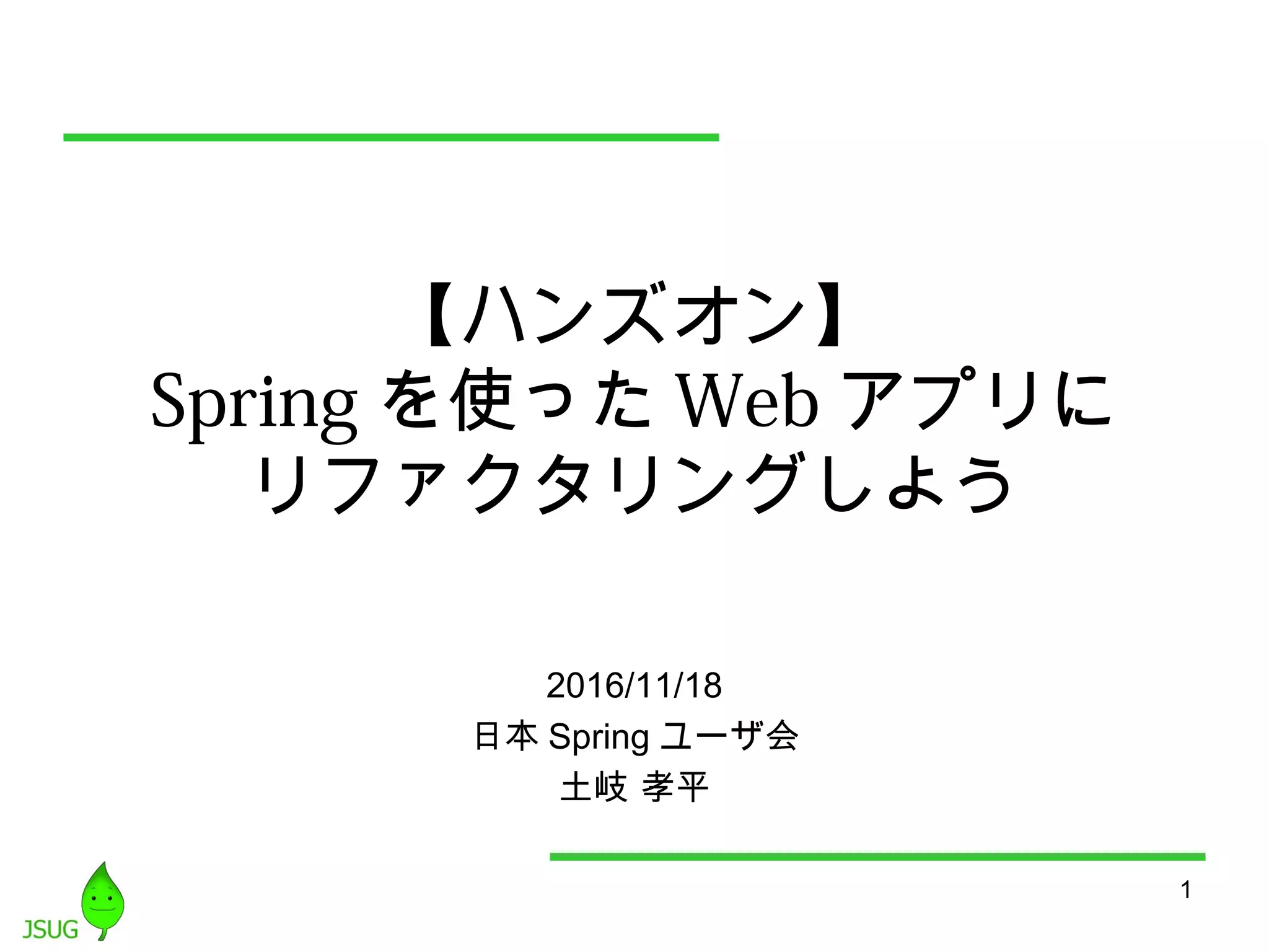 アプリに リファクタリングしよう 2016/11/18 日本 Spring ユーザ会 土岐 孝平