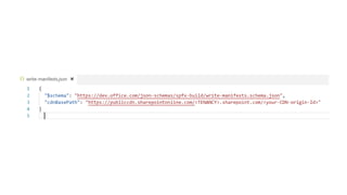 The document outlines steps for developing and deploying a SharePoint Framework (SPFx) solution, emphasizing tools and processes for building, packaging, and deploying web parts. It provides a comprehensive guide on creating a SharePoint app catalog, managing client-side assets, and utilizing Azure and Office 365 CDNs for deployment. Additionally, it discusses lifecycle management operations for SPFx solutions within a tenant app catalog.