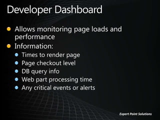 The document is an overview of the first SharePoint Saturday event in the Greater Houston area, organized by Brian Culver. It includes specifications for computer systems used during the event and instructions for site administrators on managing the developer dashboard. Attendees are encouraged to complete an evaluation form to enhance future events.
