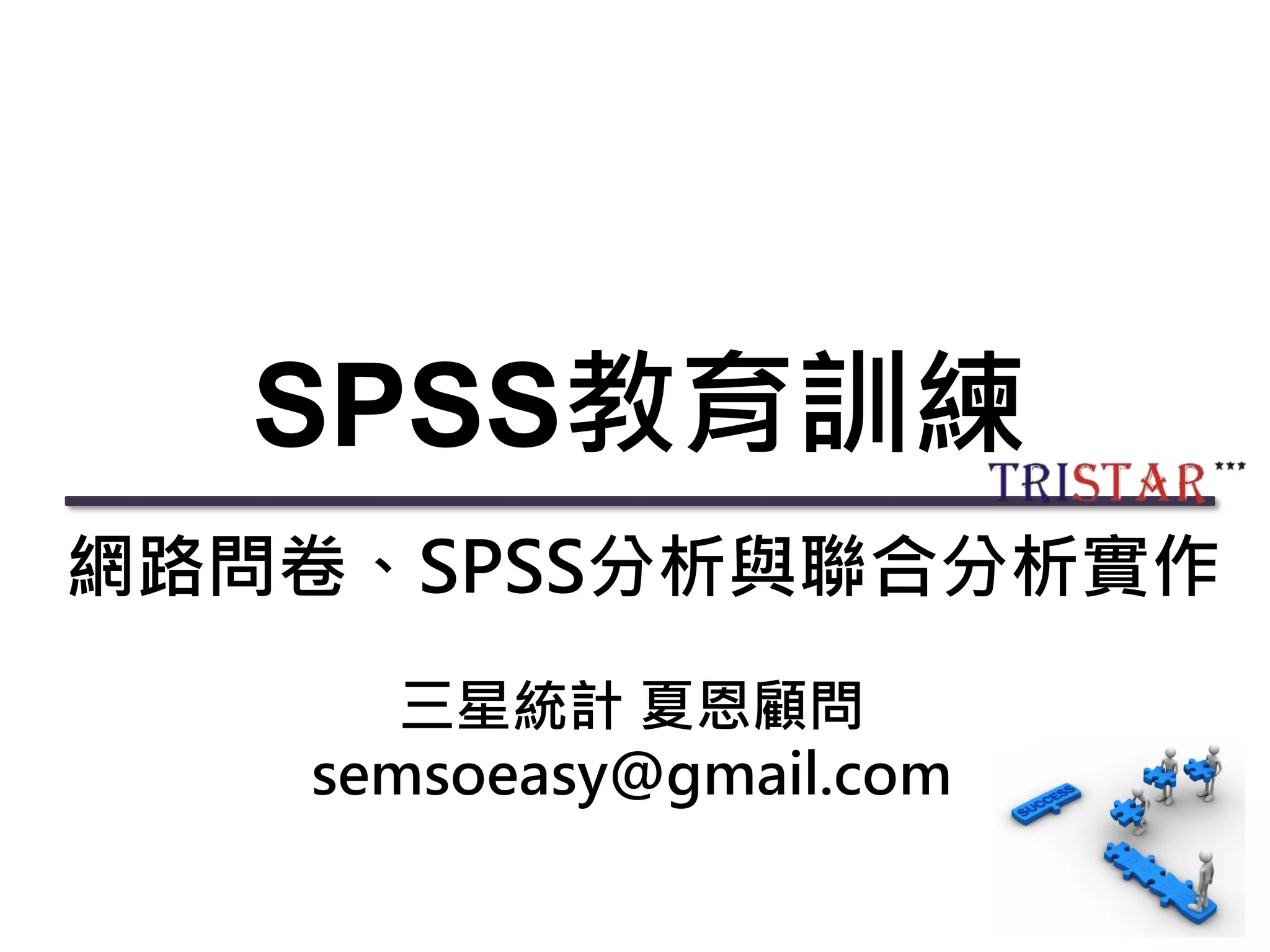 该文档概述了SPSS教育训练与在线问卷调查系统的基本使用,包括数据处理、统计分析及联合分析的流程和实例。内容涵盖了SPSS软件的基本介绍、常用函数及数据处理功能、描述性统计、问卷调查的资料分析及变量的关系分析等。提供了详细的问卷设计步骤以及数据的读取与存储方法,以帮助用户有效使用SPSS进行数据分析和决策支持。
