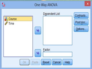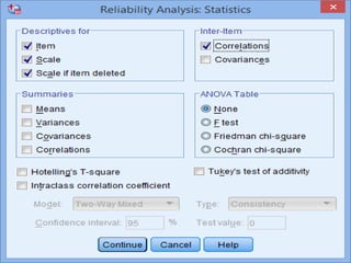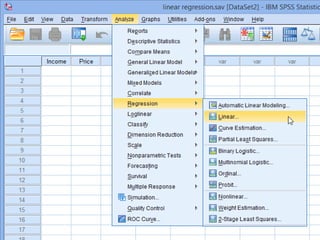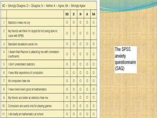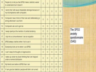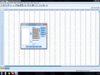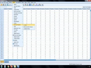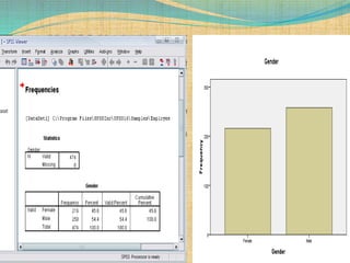 SPSS is a statistical software package used for interactive or programmed data analysis. It can perform complex data analysis and statistics with simple commands. Originally called the Statistical Package for the Social Sciences when it was first created in 1968, SPSS is now owned by IBM. The default window in SPSS contains a data editor with two sheets - the data view sheet displays raw data while the variable view sheet defines metadata for each variable. SPSS allows users to easily enter, clean, manage and analyze data to derive useful information for making informed decisions.