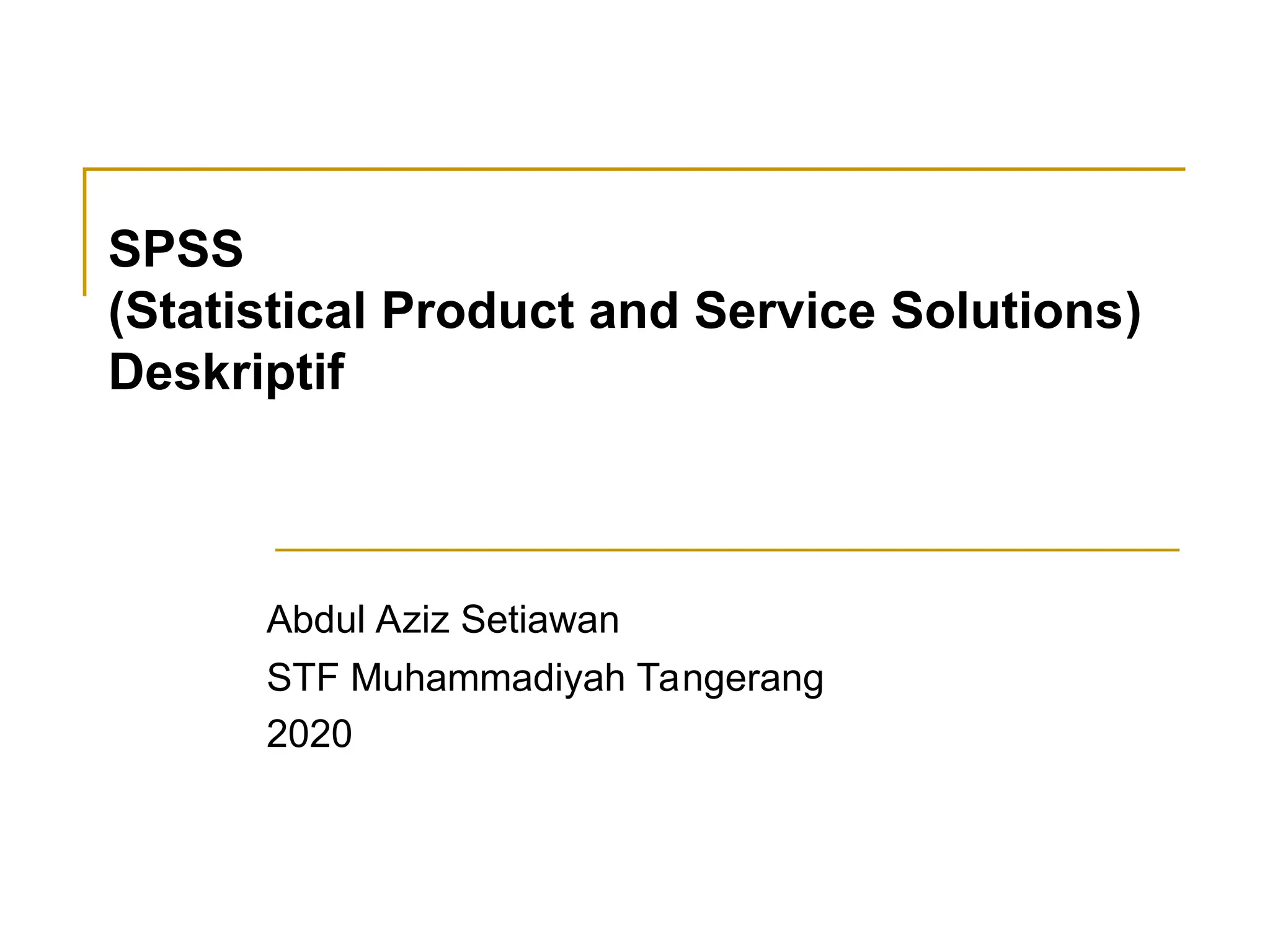 Dokumen ini membahas penggunaan SPSS dalam analisis statistik deskriptif, mencakup metode seperti frekuensi, uji chi-square, dan analisis hubungan antar variabel. Selain itu, dokumen menjelaskan aplikasi chi-square pada berbagai tabel serta cara menghitung odds ratio dan relative risk. Terakhir, terdapat contoh penerapan analisis pada hubungan antara perilaku merokok dan status fertilitas pria, serta pendidikan ibu terhadap pemanfaatan pelayanan antenatal care.