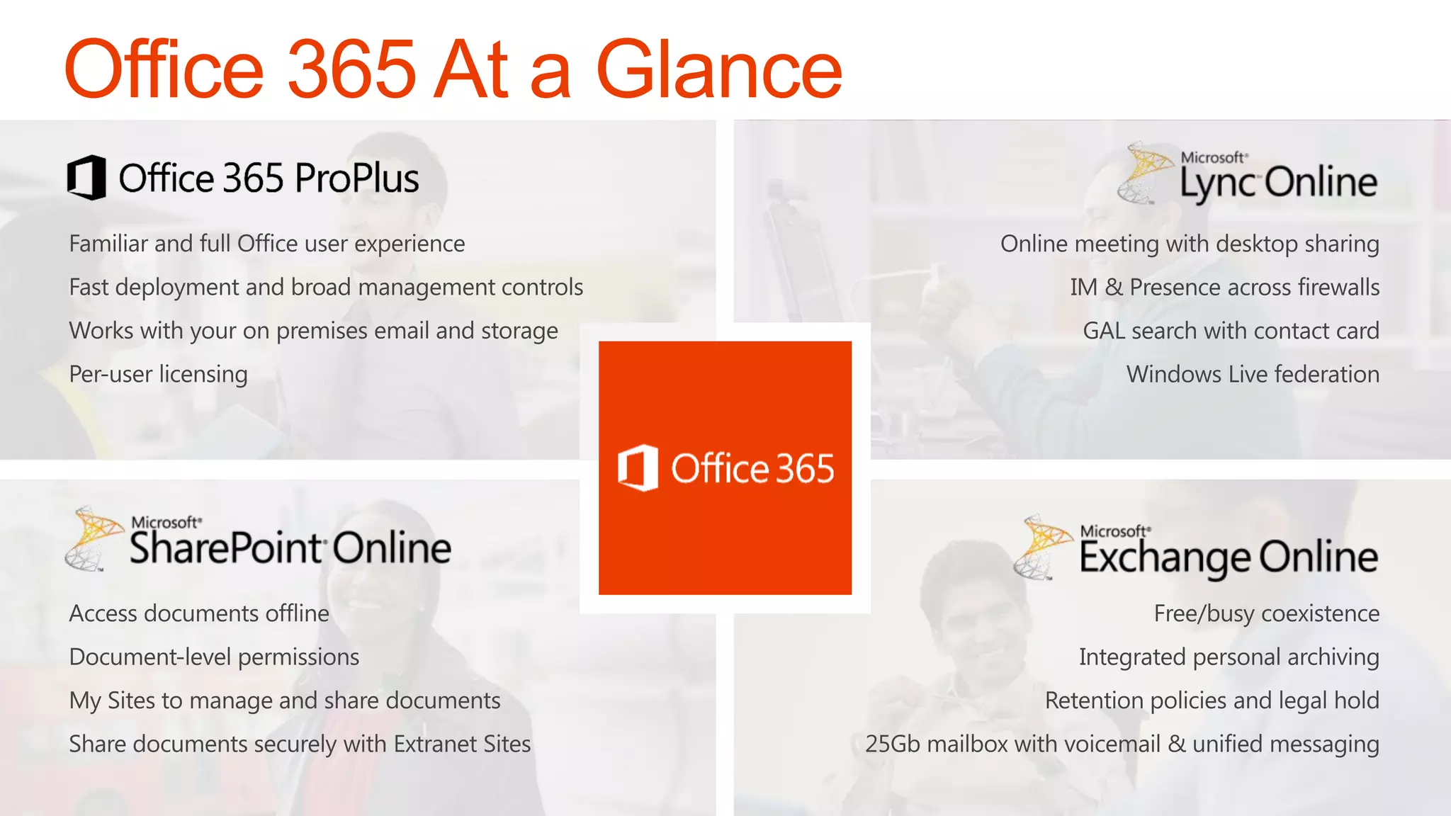 The document provides an overview of the Office 365 architecture and how SharePoint Online fits within it. It discusses how user identity and authentication are handled through Windows Azure Active Directory, including options for syncing on-premises Active Directory with Azure AD. It also summarizes the key components and features of SharePoint Online, including site collections, storage limits, apps, and external sharing capabilities. PowerShell can be used to manage components like site collections and users. Only a limited set of user attributes sync from Azure AD to SharePoint profiles.