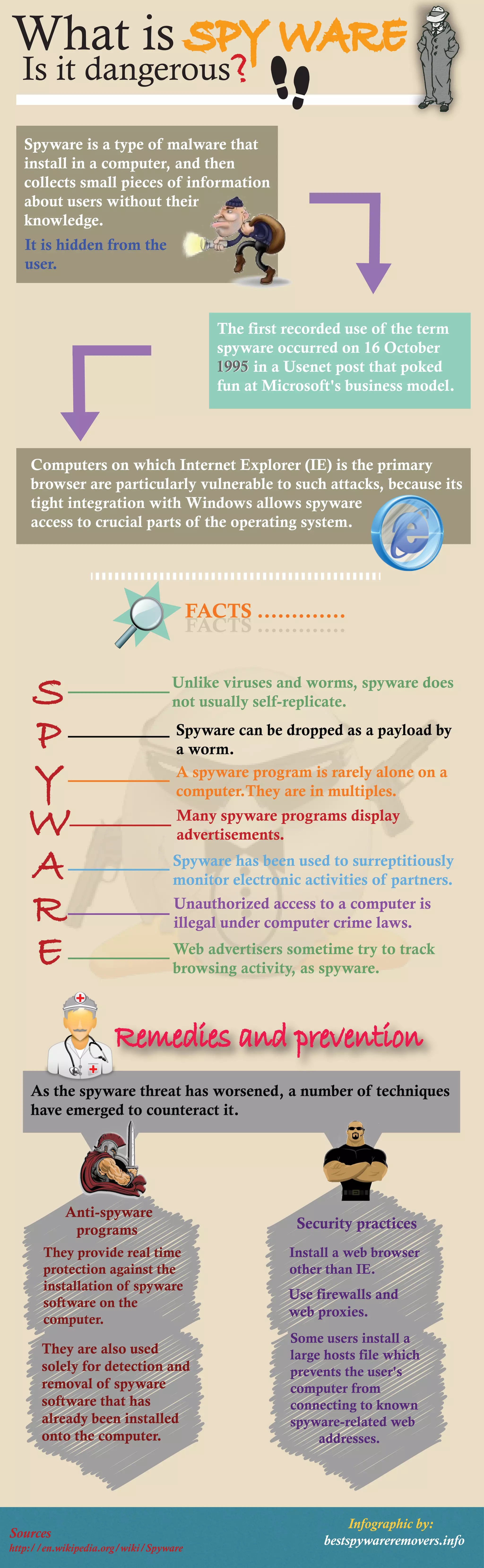 Spyware is a type of malware that secretly collects user information without their knowledge and is particularly prevalent on computers using Internet Explorer. Unlike viruses, spyware does not self-replicate and often coexists with multiple other spyware programs that may also display advertisements. Various countermeasures, including anti-spyware programs and security practices, have emerged to combat the spyware threat.