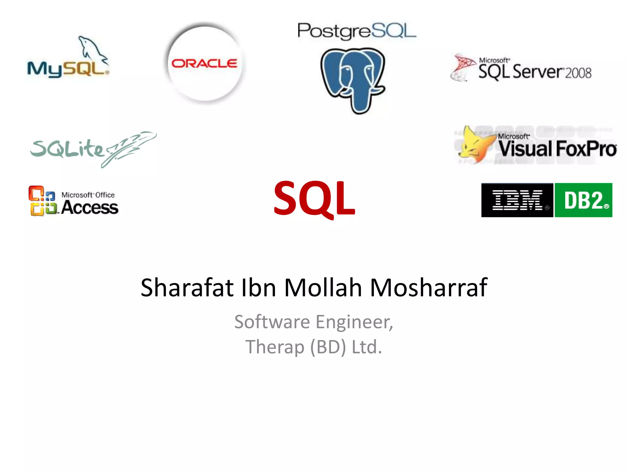 The document provides an overview of SQL, focusing on Data Definition Language (DDL) and Data Manipulation Language (DML) concepts, including commands for creating, altering, and managing tables, as well as querying data. It covers various SQL operations such as selecting data, using aggregate functions, applying where clauses, grouping and sorting results, and performing table joins. Key concepts include the distinction between DDL and DML, the use of projections, and the specifics of SQL syntax for different operations.