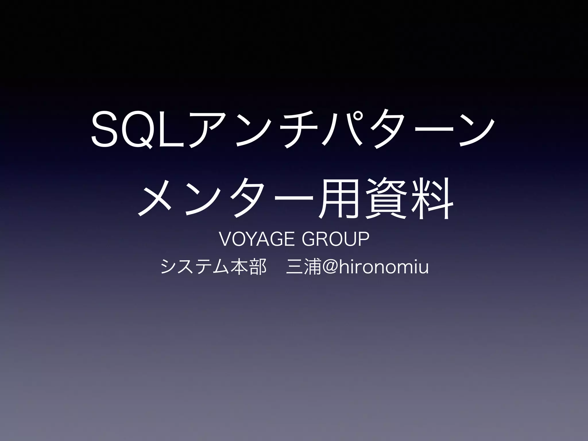 SQLアンチパターン メンター用資料 1. 2. 0章 この資料について