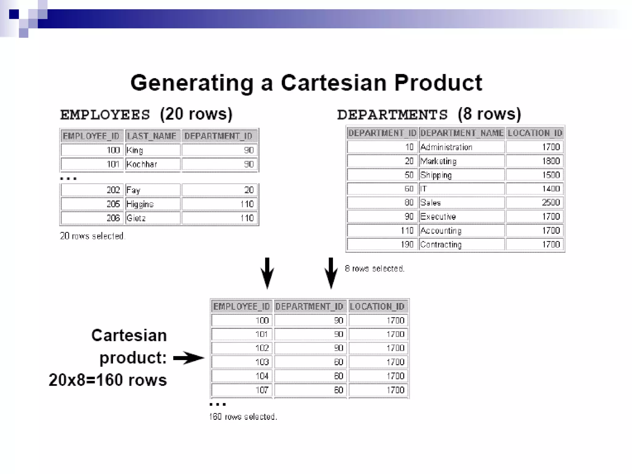 tables is an equijoin—that is, values in the DEPARTMENT_ID