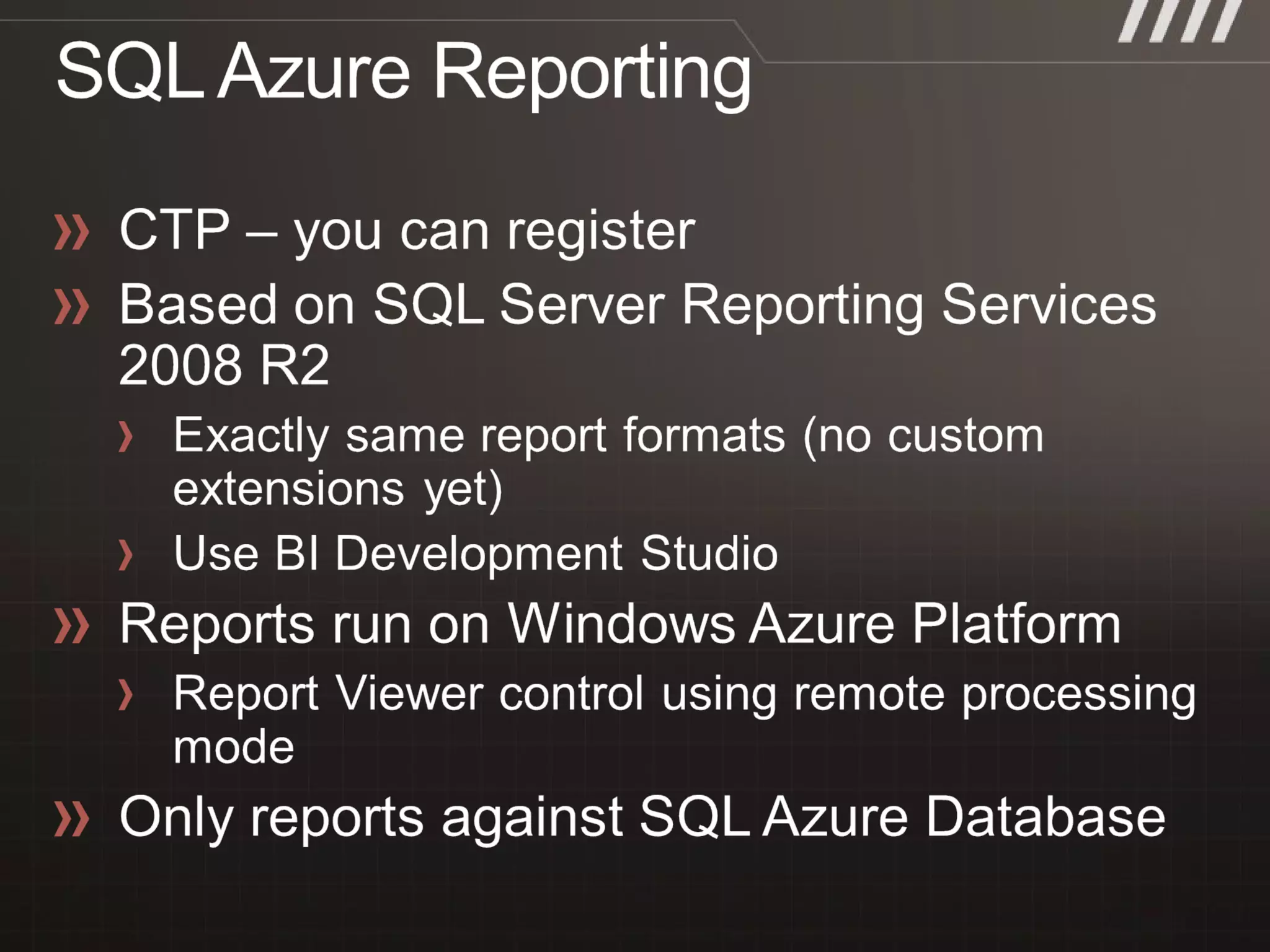 • #11 Slide Objective Provides a guide to SQL Azure vs SQL Server compatability Speaker Notes For more details see this document SQL Azure vs SQL Server differences http://www.microsoft.com/downloads/details.aspx?FamilyID=86f12b41-1eba-4567-9ac8-02eaa7d12034&displaylang=en