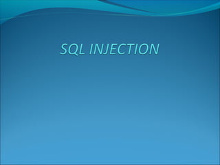 The document discusses SQL injection attacks, including what SQL injection is, types of SQL injection attacks such as first and second order attacks, mechanisms for injection through user input or cookies, and techniques for preventing SQL injection like defensive coding practices and input validation. SQL injection is a code injection technique where malicious SQL statements are inserted into an entry field for execution by the backend database, allowing attackers to view or manipulate restricted data in the database. The document provides examples of SQL injection and explores ways attackers can infer information and encode attacks despite prevention methods.