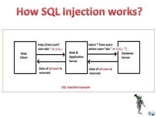 SQL injection is a code injection technique used to attack data-driven applications by inserting malicious SQL statements into entry fields. It allows attackers to gain unauthorized access, modify, or delete data, leading to significant security breaches as demonstrated by high-profile cases. Defenses against SQL injection include data sanitization, the use of web application firewalls, and limiting database privileges.