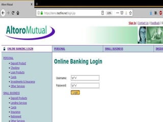 SQL injection is a code injection technique where malicious SQL statements are inserted into an entry field for execution, allowing a hacker to interfere with a database-driven application's interaction with backend databases. There are different types of SQL injections, including union-based, error-based, and blind SQL injections. Authentication can also be bypassed through SQL injection by making logical conditions like 1=1 or ""="" always true. The document provides examples of SQL injection payloads and demo websites to practice SQL injection techniques.