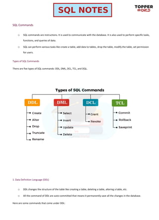 o SQLcommands are instructions. It is used to communicate with the database. It is also used to perform specific tasks,