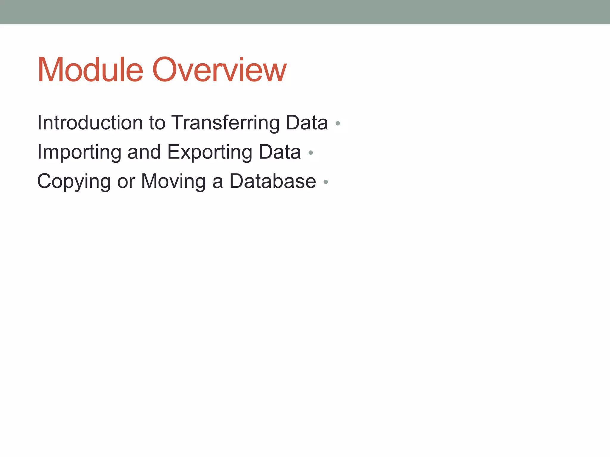 This document provides an overview of importing and exporting data in SQL Server. It discusses Extract, Transform, Load (ETL) processes and scenarios for data transfer. It describes tools for importing and exporting like the Import and Export Wizard, SQL Server Integration Services, bcp utility, BULK INSERT, and OPENROWSET functions. It discusses techniques for improving data transfer performance like disabling constraints, indexes, and triggers. It provides demonstrations of using the Import and Export Wizard, bcp utility, BULK INSERT statement, and OPENROWSET function. It also covers options for copying or moving databases like detach/attach, backup/restore, Copy Database Wizard, and Data-Tier Applications.