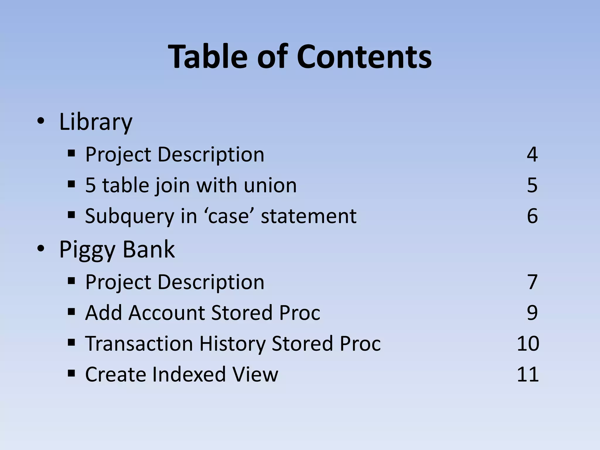 This document provides a summary of SQL projects completed through the SetFocus SQL Master's Program. It includes descriptions and code snippets from projects involving multiple table joins, subqueries, stored procedures for account management and transactions, indexed views, SSIS packages for data import/validation/updating tables, and SSRS reports with parameters. The SetFocus Program provided over 300 hours of hands-on SQL development experience through real-world projects simulating a work environment.