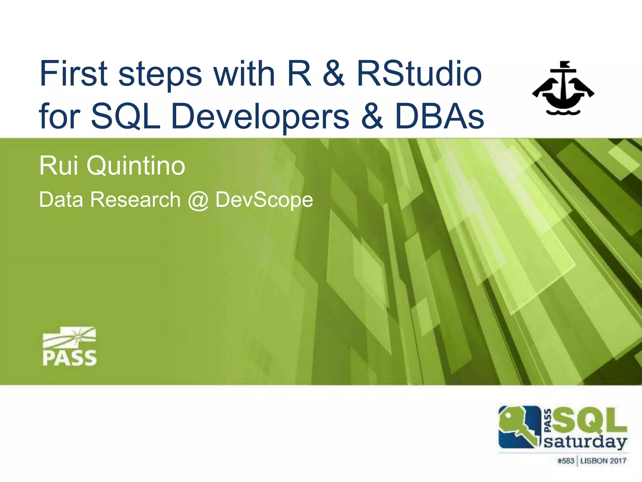 The document presents an introductory session on using R and RStudio for SQL developers and DBAs, highlighting its utility in statistics, data visualization, and machine learning. It covers the characteristics of R as an open-source programming language and environment, along with its ecosystem, community support, and challenges faced by users. Additionally, resources for getting started with R and RStudio are provided, along with notable blogs to follow for further learning.