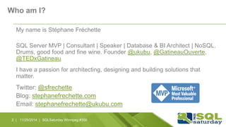 The document is a presentation by Stéphane Fréchette on graph databases, specifically focusing on Neo4j, a leading open-source graph database. It covers topics such as data modeling, the Cypher query language, importing data, and various applications of graph databases including social networks and fraud detection. Additionally, the document provides resources for further learning about Neo4j and graph databases.
