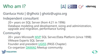 Gianluca Hotz discusses SQL Server modernization strategies, covering various types of migrations and upgrades, which range from low complexity version upgrades to high complexity re-platforming. The document details the motivations behind such migrations, the potential barriers customers face, and the differences in project types driven by customer needs versus independent software vendors. It also highlights tools and strategies for successful upgrades, emphasizing the challenges related to application and database compatibility, as well as performance optimizations.