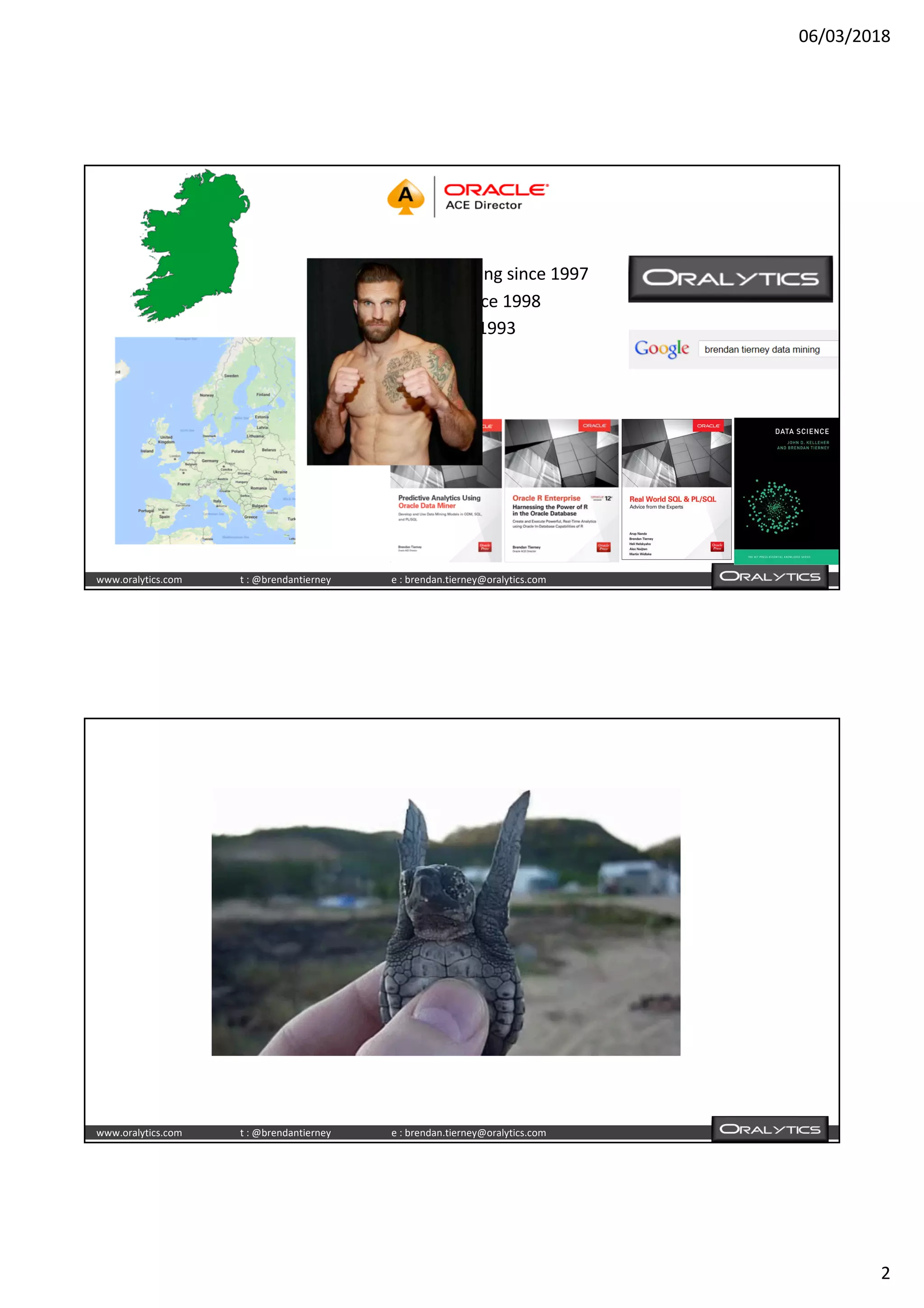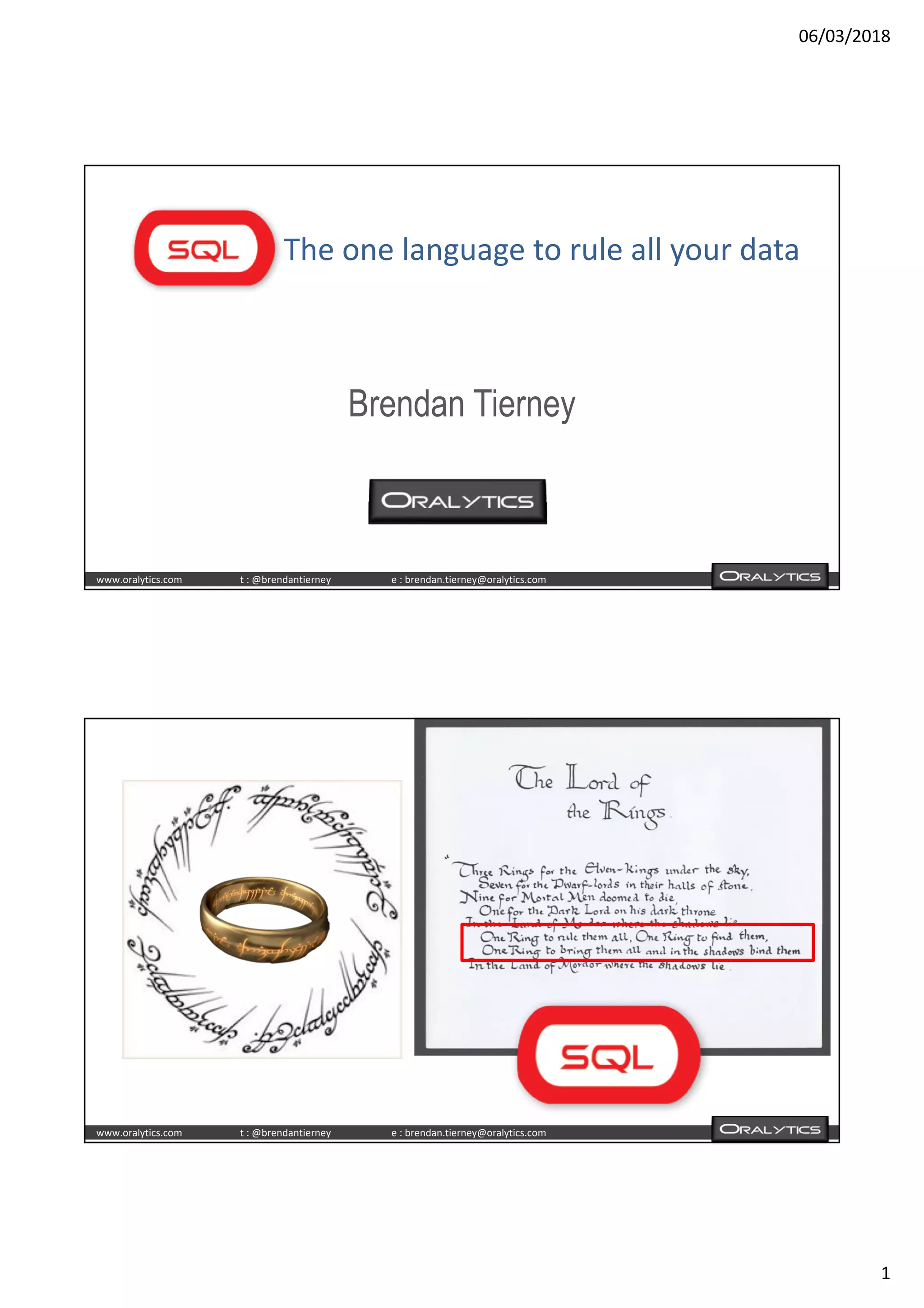The document discusses using Oracle SQL and R together for advanced analytics and machine learning. It provides examples of building predictive models in R and scoring new data using those models through SQL queries. Specific capabilities covered include building an in-database R script to score new data with a GLM model, either in batch or real-time mode. The document promotes using Oracle's built-in analytics functions and machine learning tools as an alternative or complement to standalone R for scalable, secure, and production-ready advanced analysis.