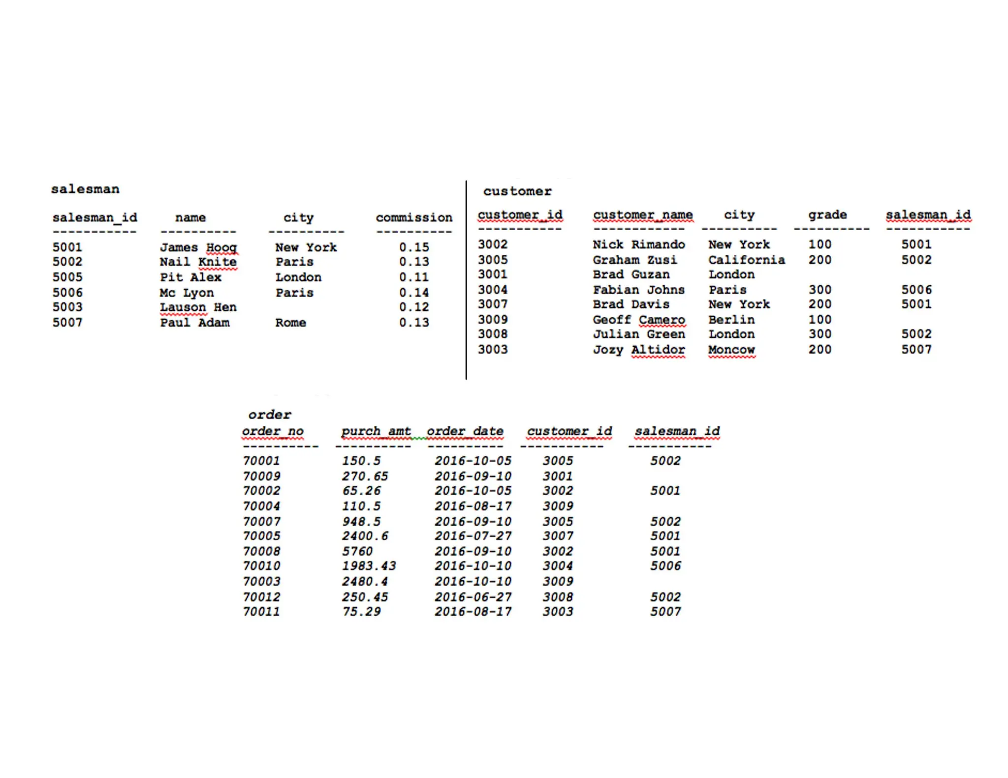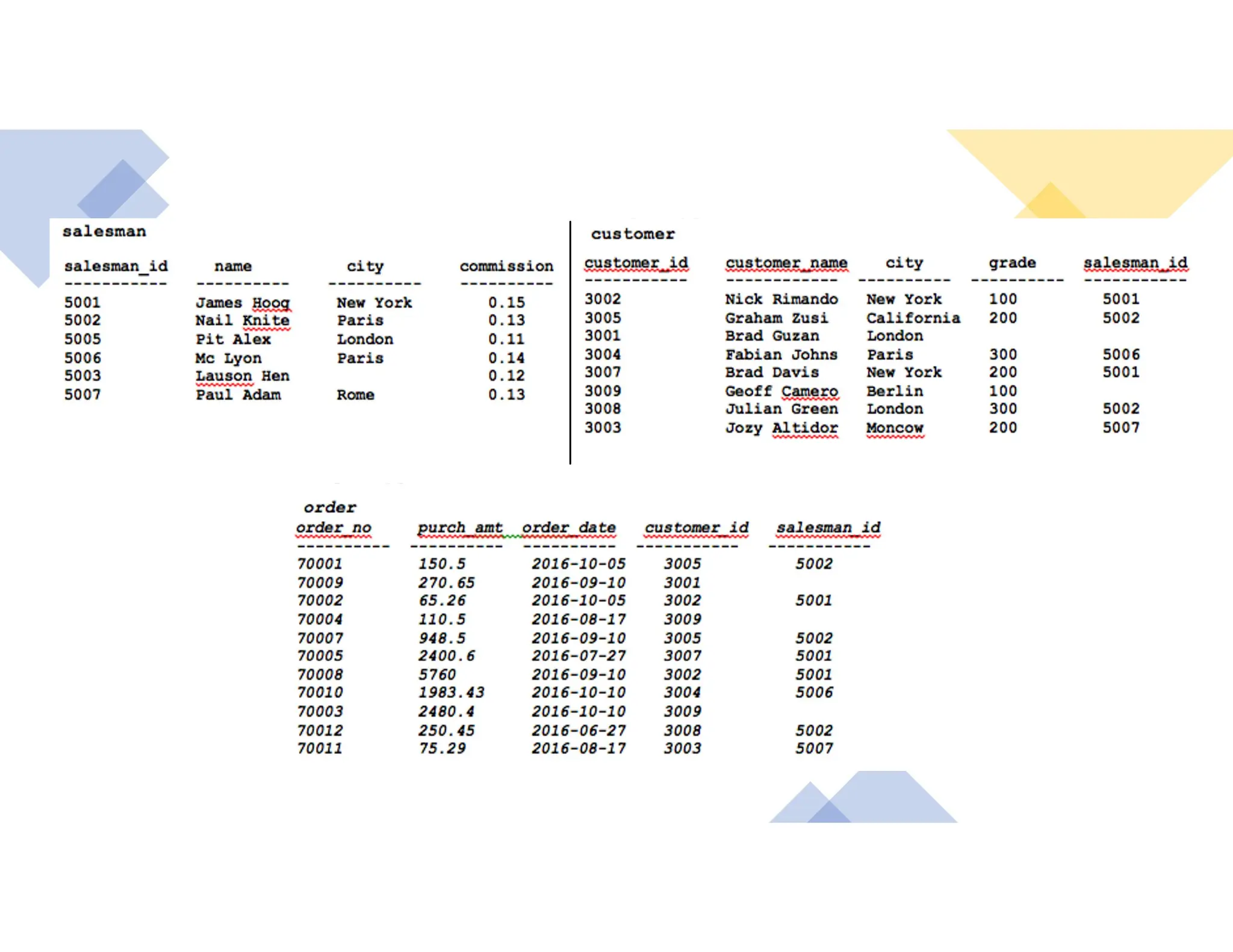 SELECT c.salesman_id, s.name FROM salesman AS s, customer AS c
