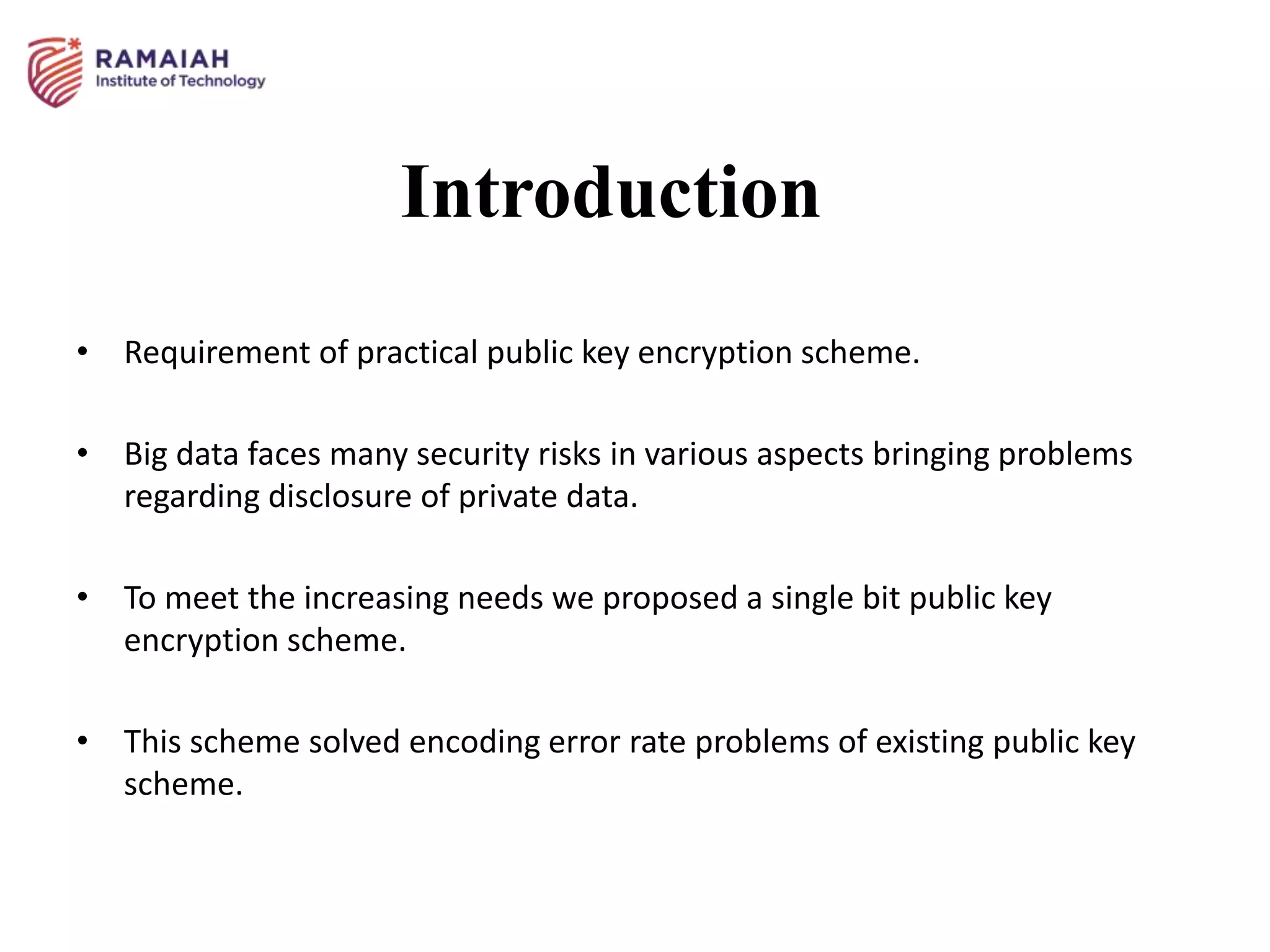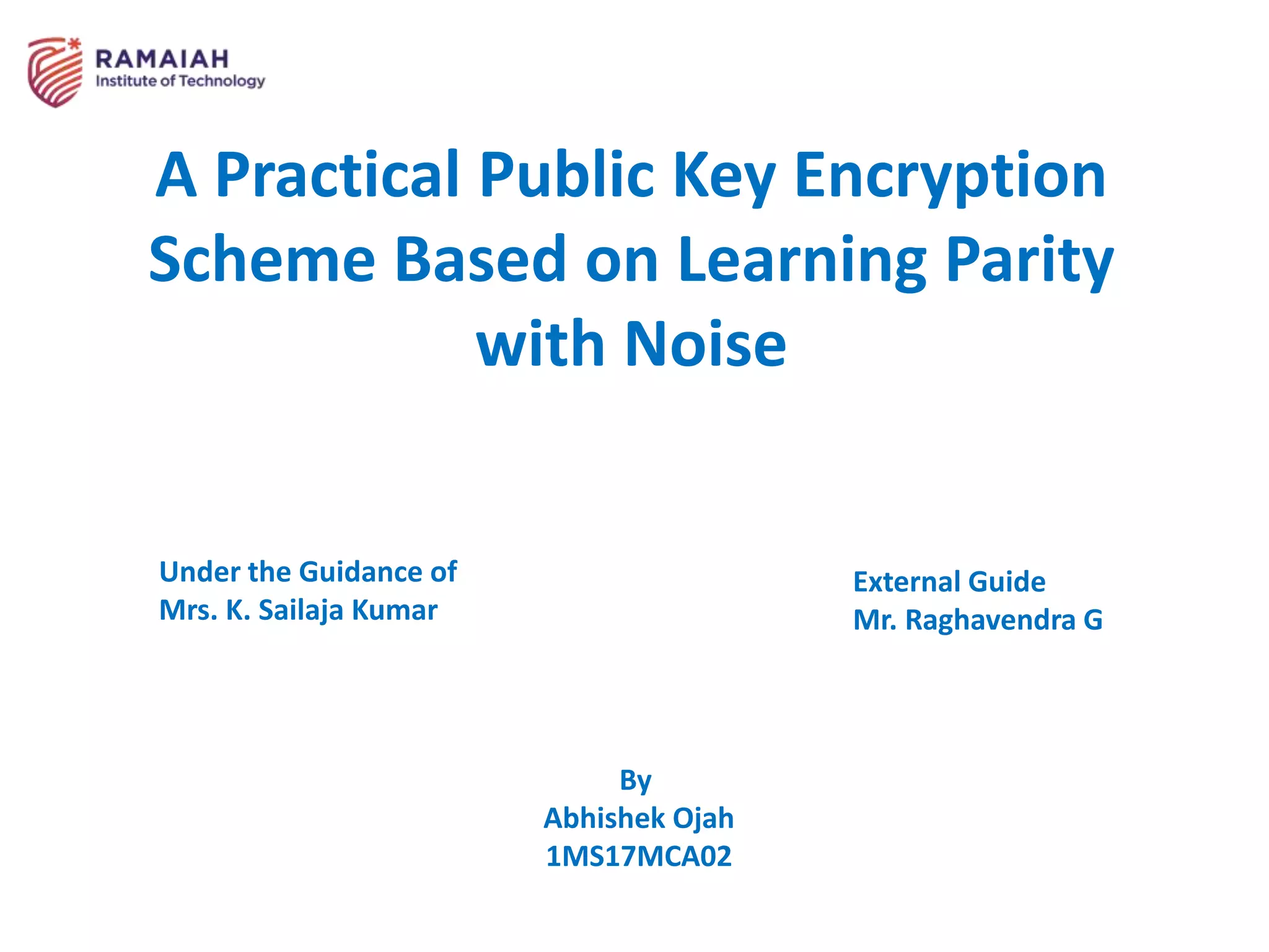 This document summarizes a proposed public key encryption scheme based on learning parity with noise (LPN). It aims to address the non-negligible encoding error that exists in existing public key encryption schemes based on LPN variants. The proposed scheme uses single-bit and multi-bit encryption to reduce encoding errors with only a small increase in ciphertext space and computation overhead. It is designed to withstand quantum attacks while providing strong practical security.
