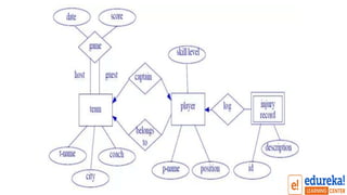 The document provides an overview of entity relationship modeling and SQL. It defines key concepts like entities, attributes, relationships and cardinalities. It also explains how these concepts are represented in an entity relationship diagram using standard symbols like rectangles for entities and diamonds for relationships. Specific examples of one-to-one, one-to-many and many-to-one relationships are illustrated. The document aims to introduce fundamental database and data modeling principles.