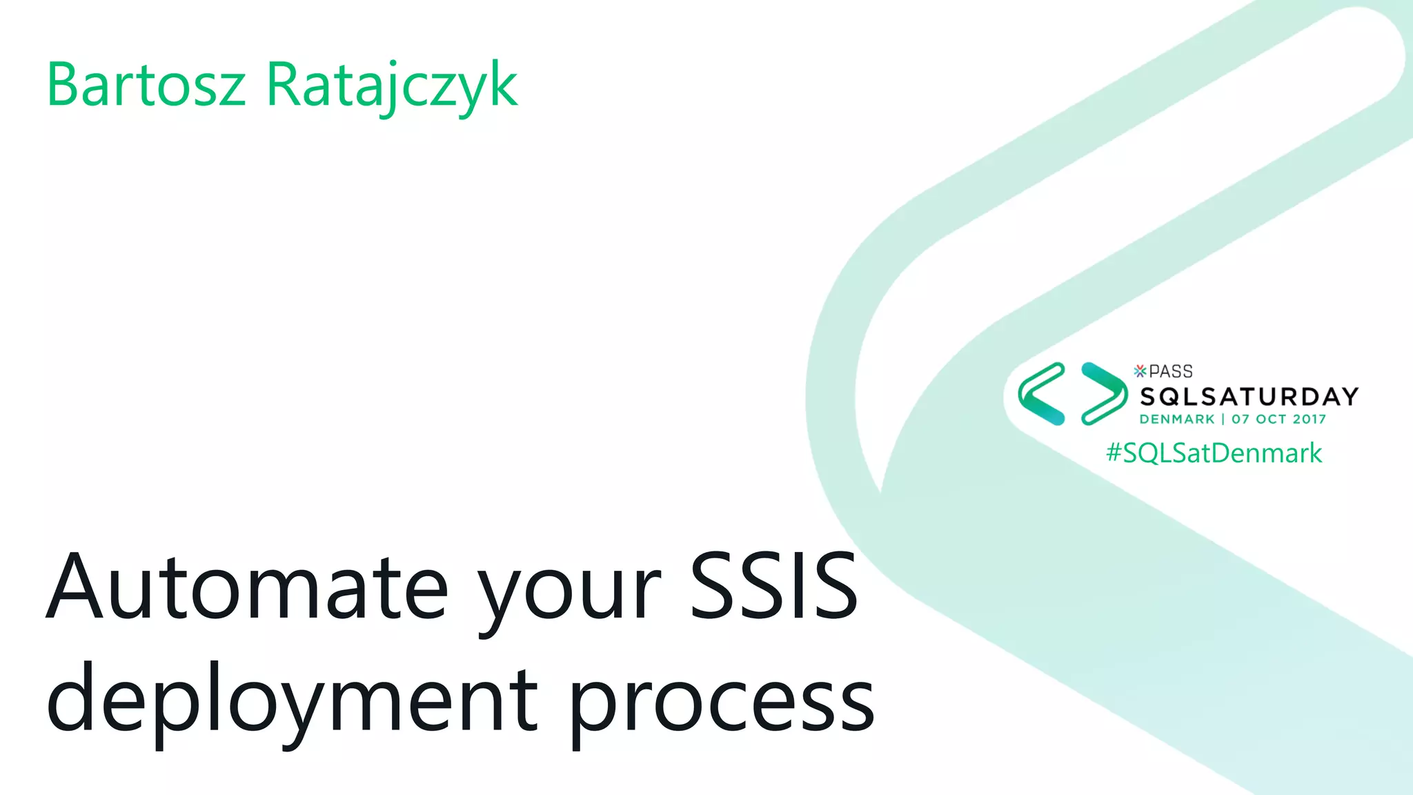 The document discusses automating the SSIS deployment process, highlighting steps to streamline workflows and remove manual tasks. Key topics include project compilation, deployment configurations, environment handling, and the use of tools like MSBuild and PowerShell for automation. It also emphasizes best practices in version control and validation as essential elements for efficient deployment.