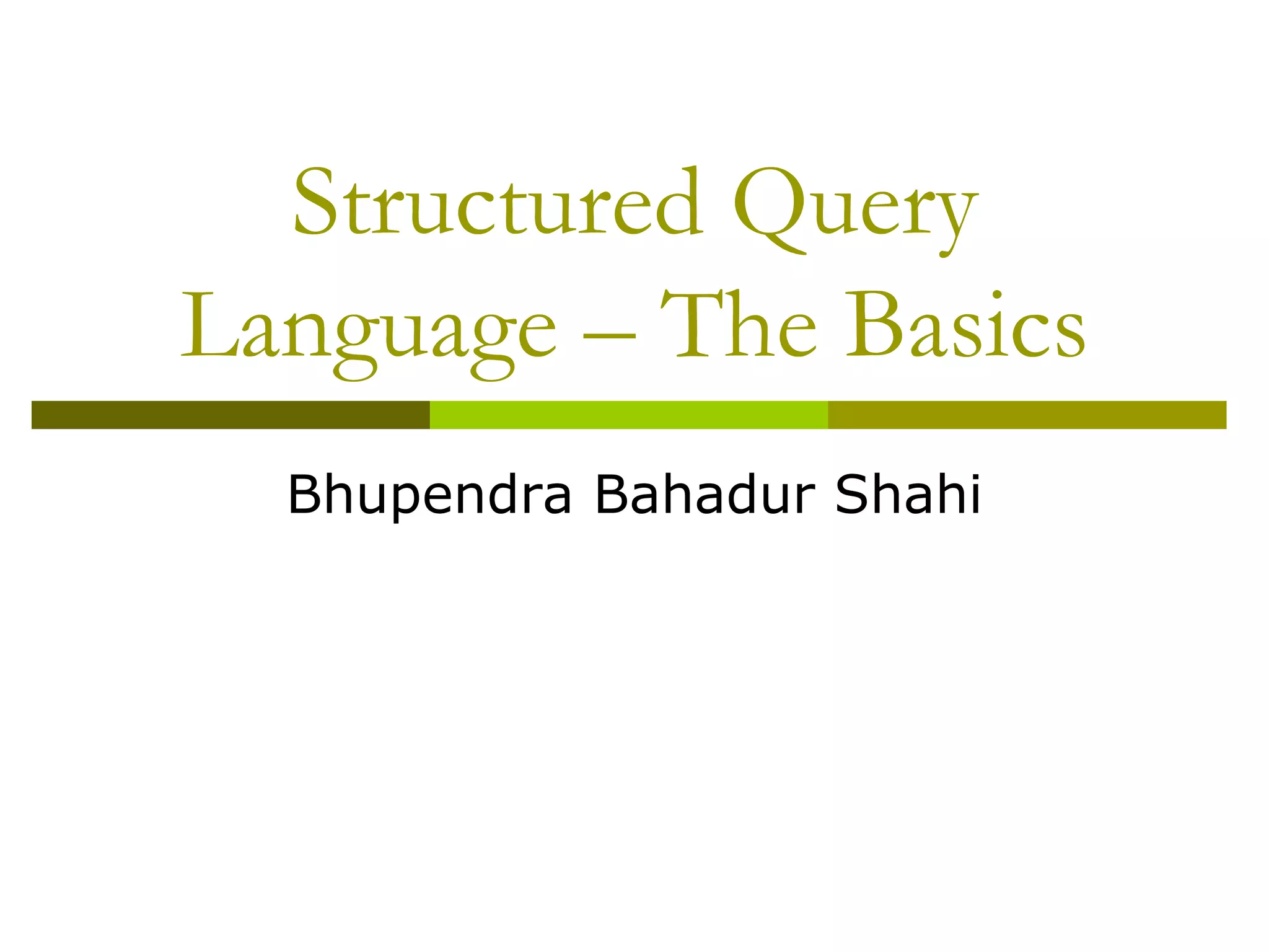 Structured Query Language (SQL) is used to define, manipulate, and control data in a relational database. The document provides an overview of SQL, covering its main components like Data Definition Language (DDL) for defining tables, Data Manipulation Language (DML) for inserting, updating, deleting and selecting data, and Data Control Language (DCL) for controlling database privileges. It describes the basic DML commands, discusses integrity constraints and transactions, and shows how to perform single table and joined queries using SQL syntax.